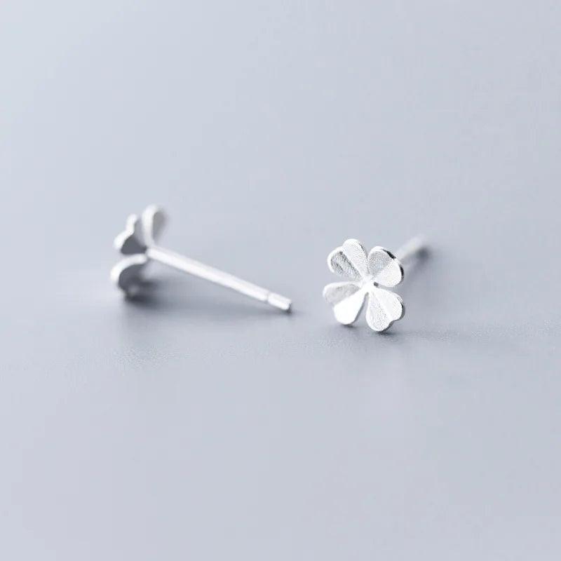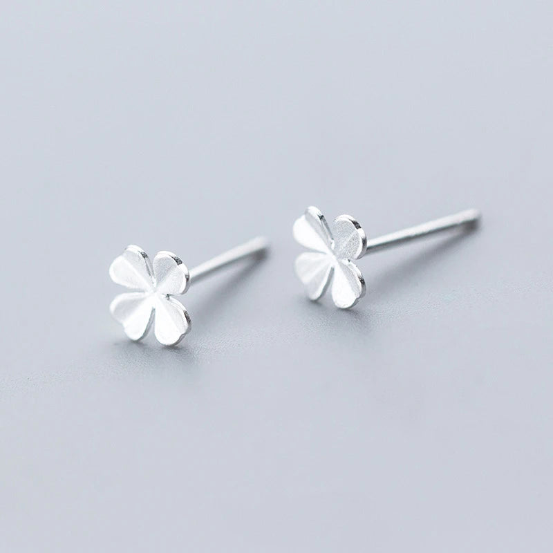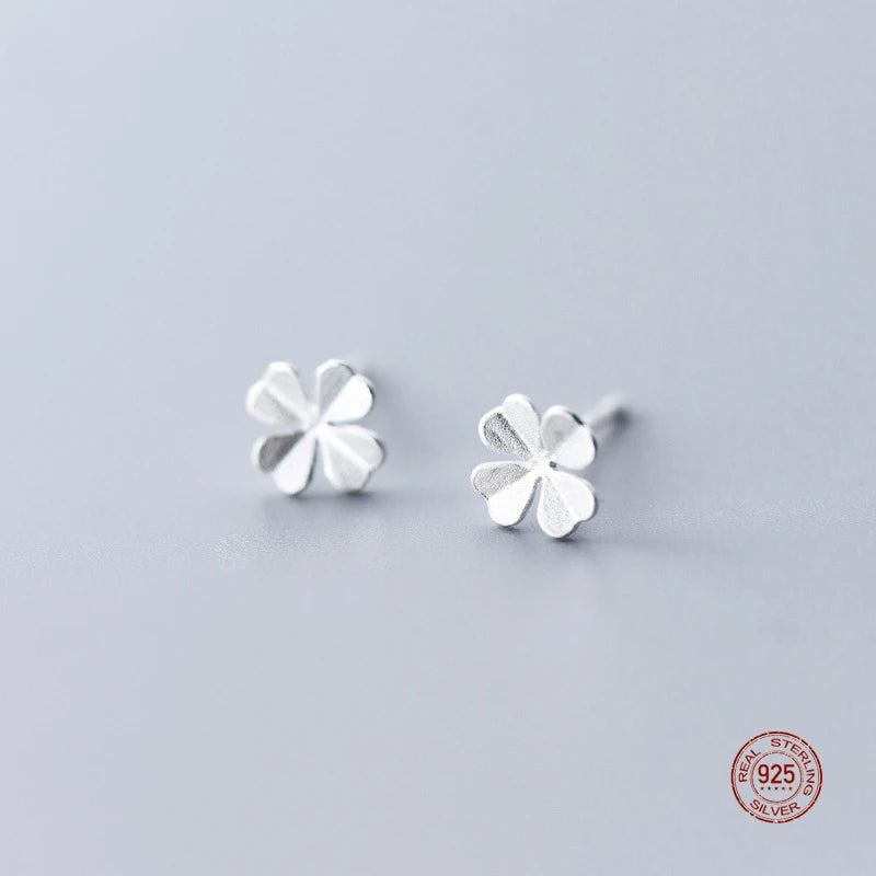 925 Silver Clover Stud Earrings for Women, Sweet Ear Studs, Gift