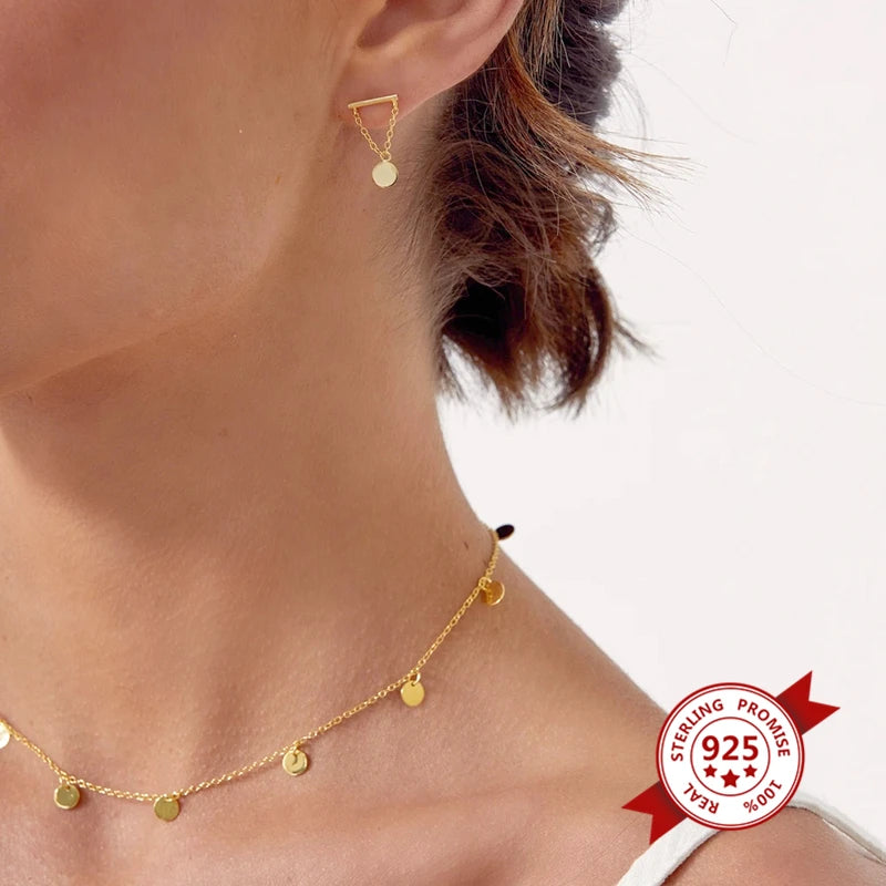 These elegant 925 silver earrings feature a chain and coin pendant design. Perfect for everyday wear or special occasions. Ideal gift for women.