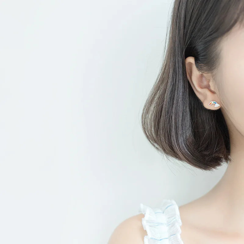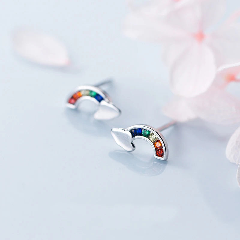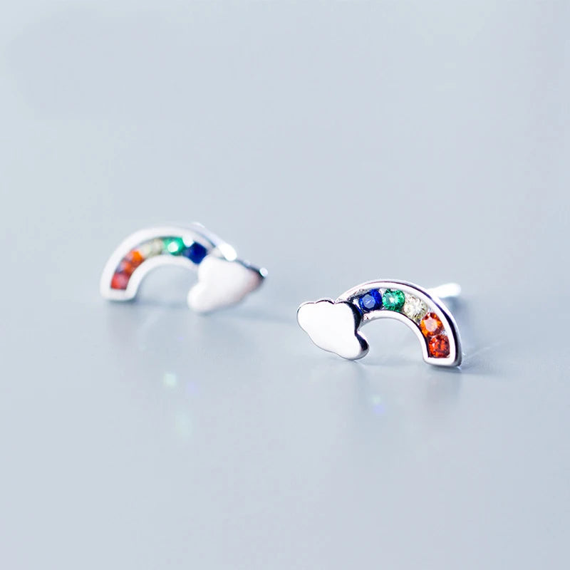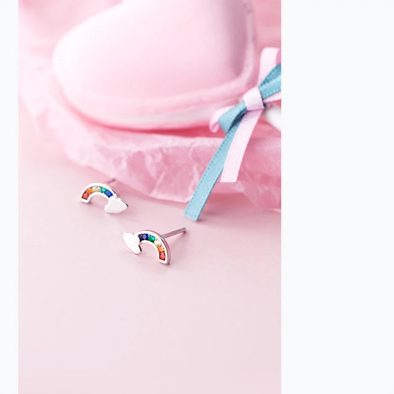 Adorn your ears with these delightful rainbow cloud stud earrings made of 925 solid sterling silver. The colorful CZ stones bring a vibrant touch to your everyday look.