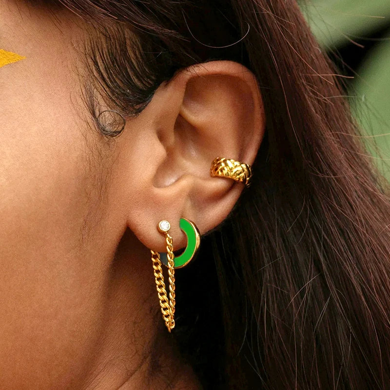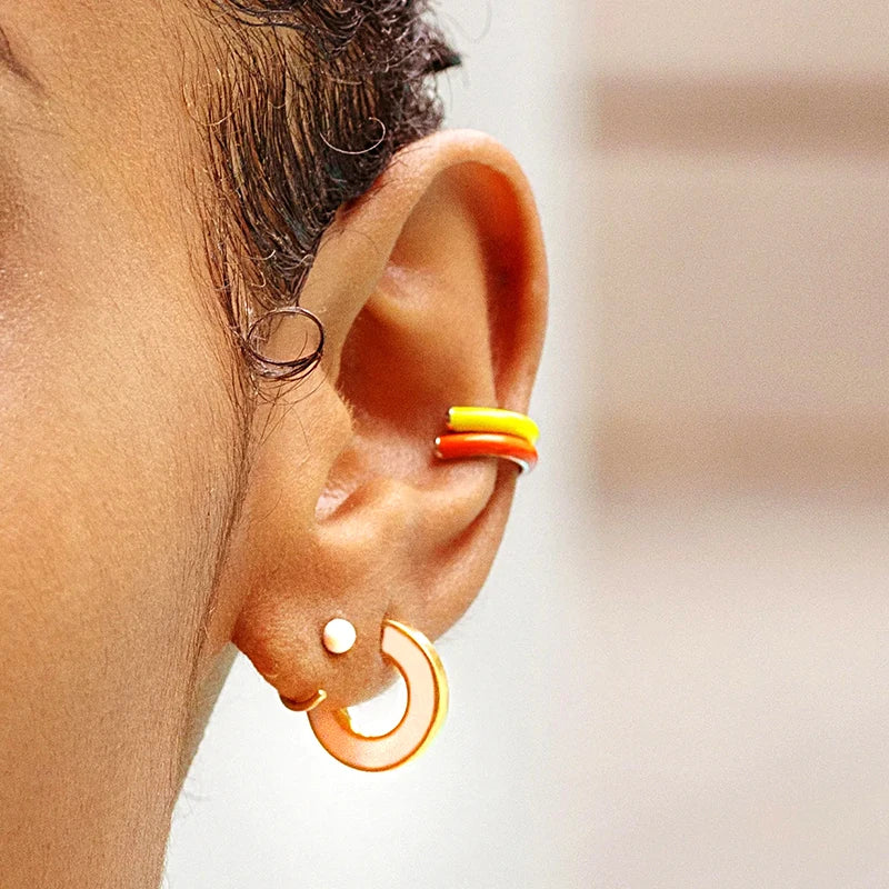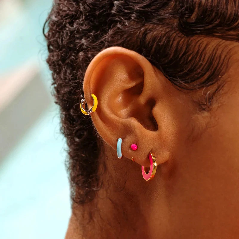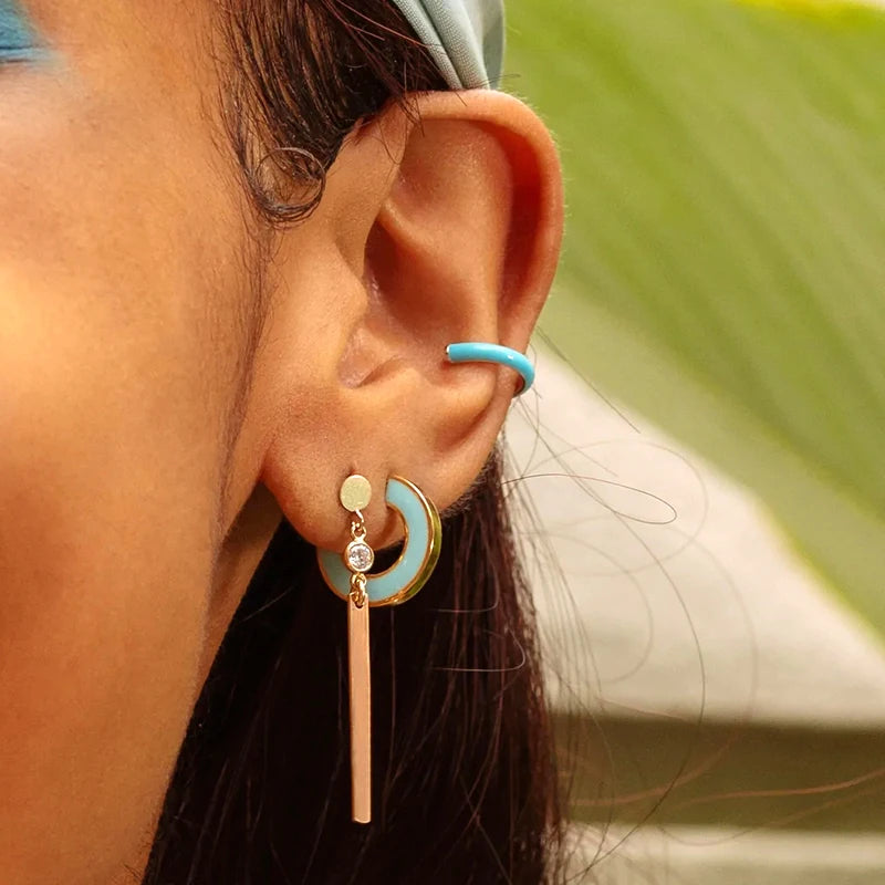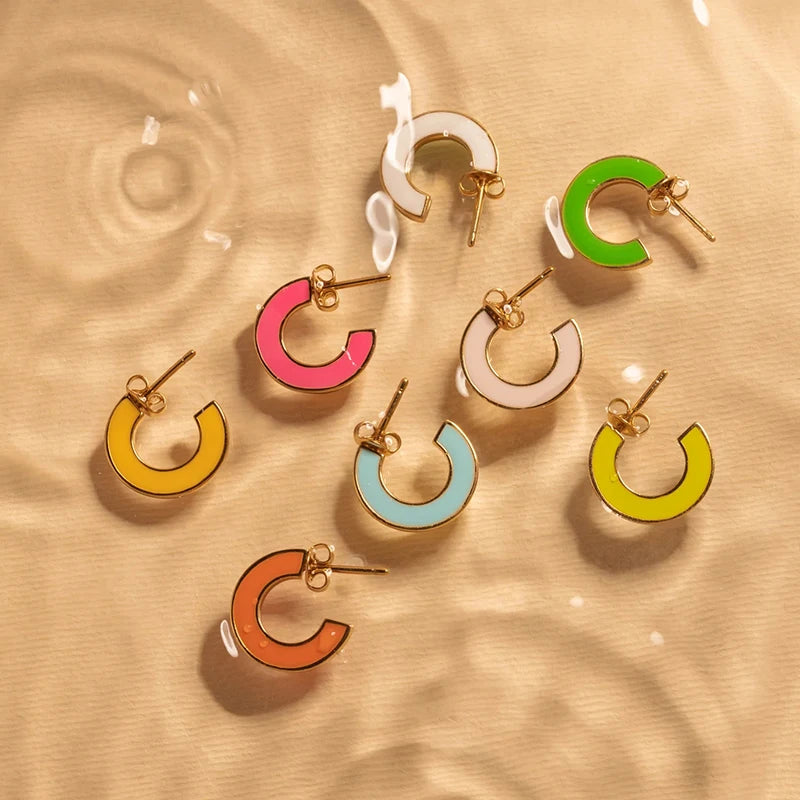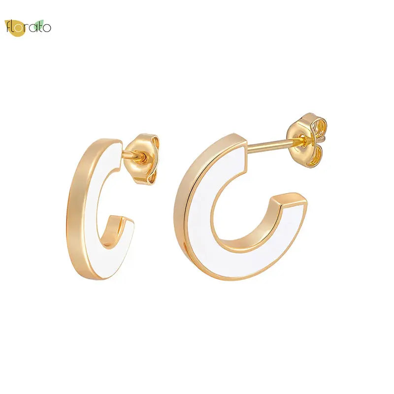 - Colorful enamel in geometric C shape design