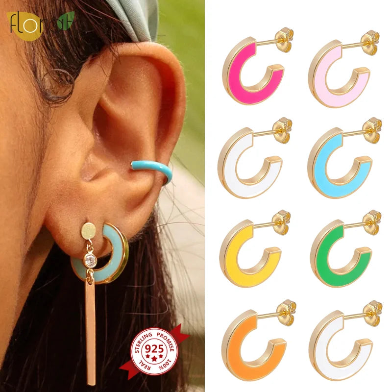 Add a pop of color to your outfit with these 925 sterling silver ear stud earrings featuring vibrant enamel in a geometric C shape design. These earrings are perfect for a touch of elegance.