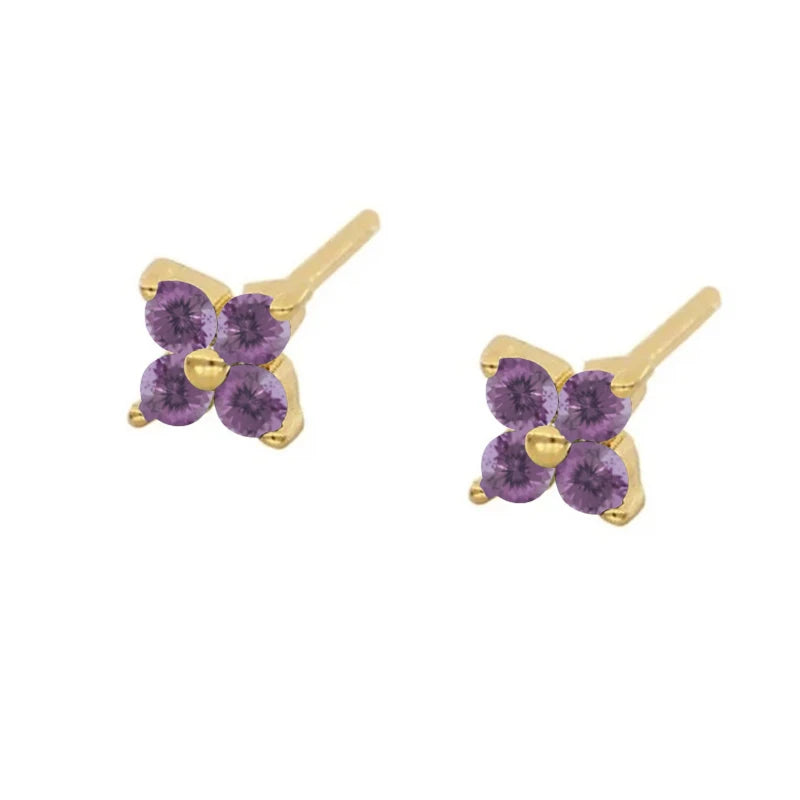 Add a touch of elegance with these stunning flower shape stud earrings. Made of 925 sterling silver with vibrant turquoise, rose red, and purple zircon stones.