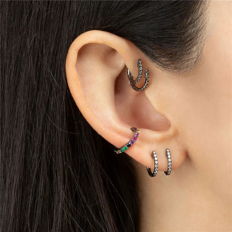 Add a pop of color to your look with these stylish 925 sterling silver clip earrings featuring micro pave colorful zircons. These gun-black 10mm ear cuffs are perfect for punk style jewelry.