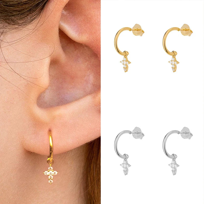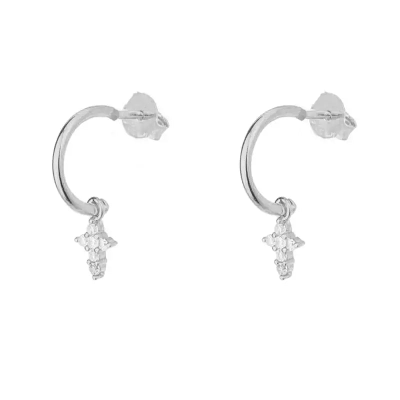 These stunning stud earrings feature a cross-shaped crystal pendant with CZ stones set in 925 sterling silver. Perfect for birthdays or special occasions.
