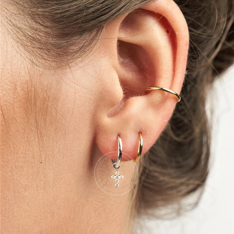 925 Silver Cross Crystal CZ Stud Earrings Women Birthday Gift