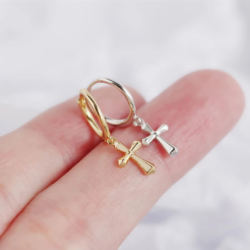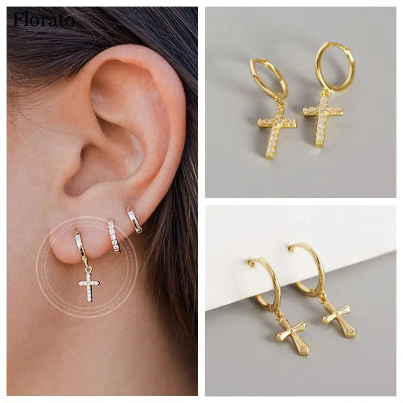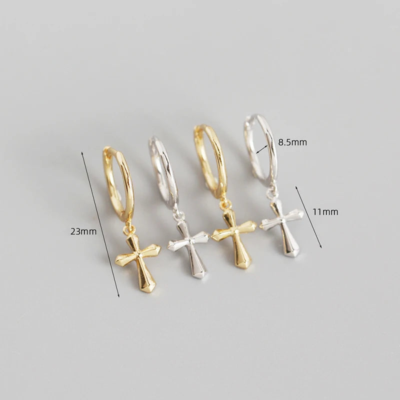 These beautiful hoop earrings are made of 925 sterling silver with a cross crystal diamond pendant. They are designed for ladies who want to add a touch of elegance to their look.