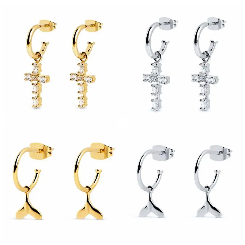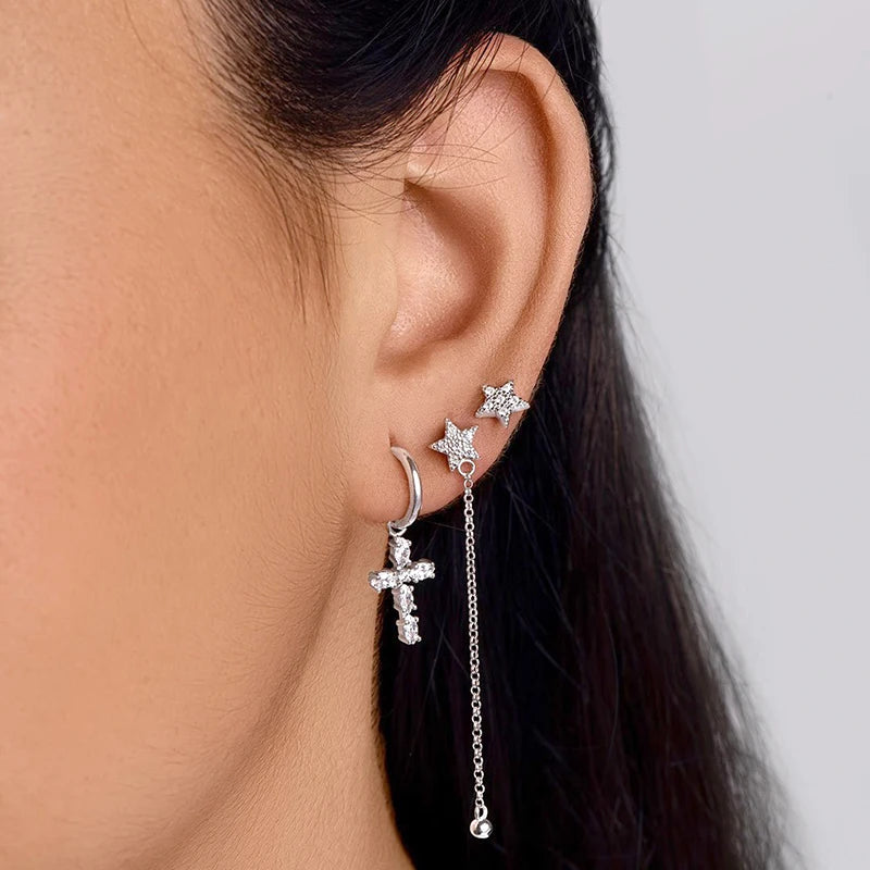 Add a touch of elegance with these minimalist little grass earrings made of 925 sterling silver. The crystal cross pendant adds a unique charm to the design.
