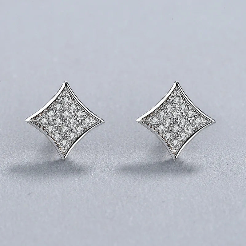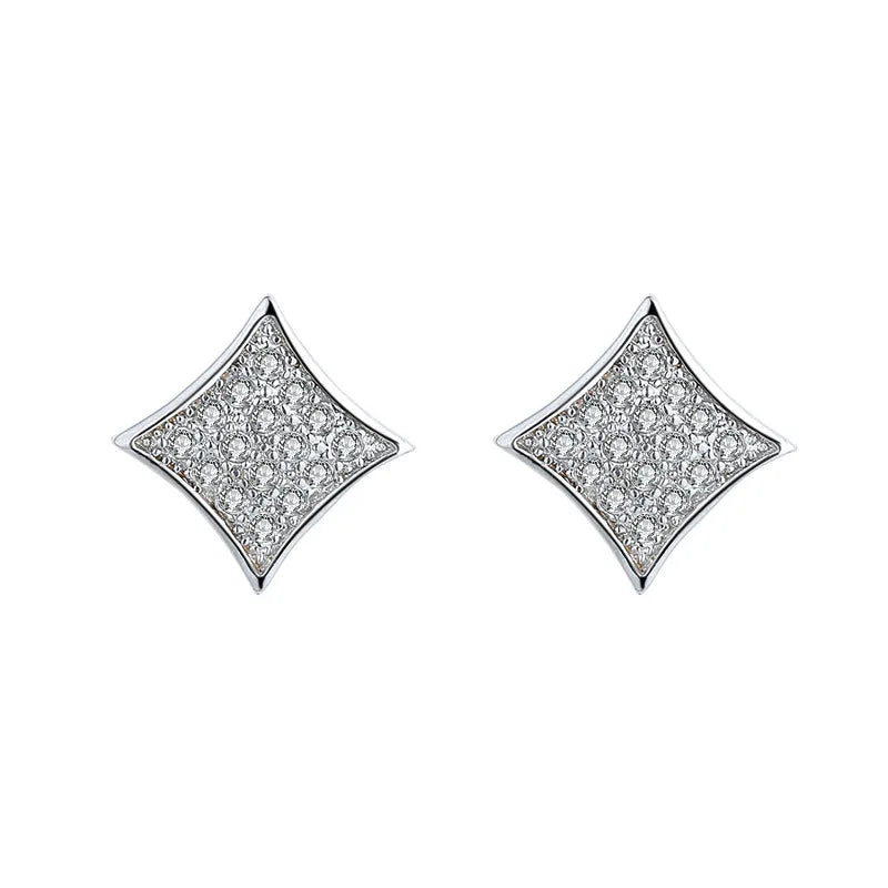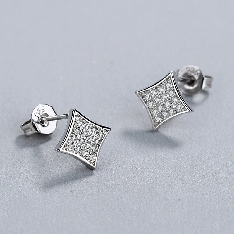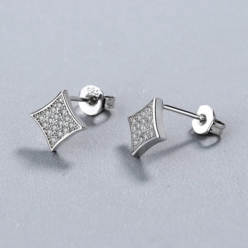 These elegant 925 sterling silver stud earrings feature sparkling crystals in a square design. Perfect for engagements, weddings, or everyday wear.