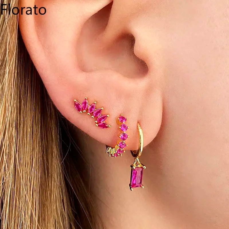 Add a pop of color to your outfit with these stunning 925 sterling silver earrings featuring colorful crystal, zircon, and turquoise accents.