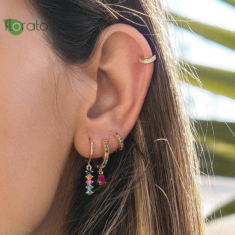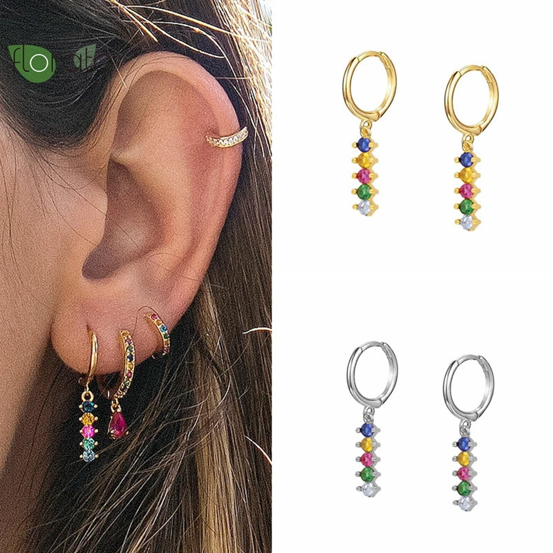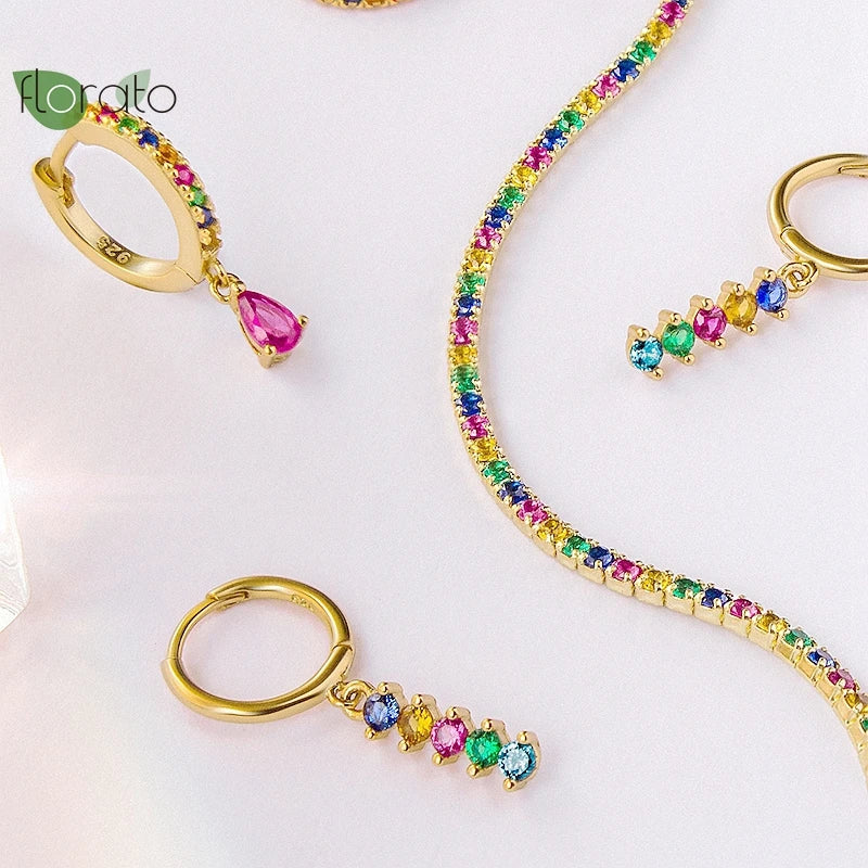 Add a touch of elegance to your look with these delicate hoop earrings featuring colorful CZ crystals. Perfect for weddings, parties, and special occasions.