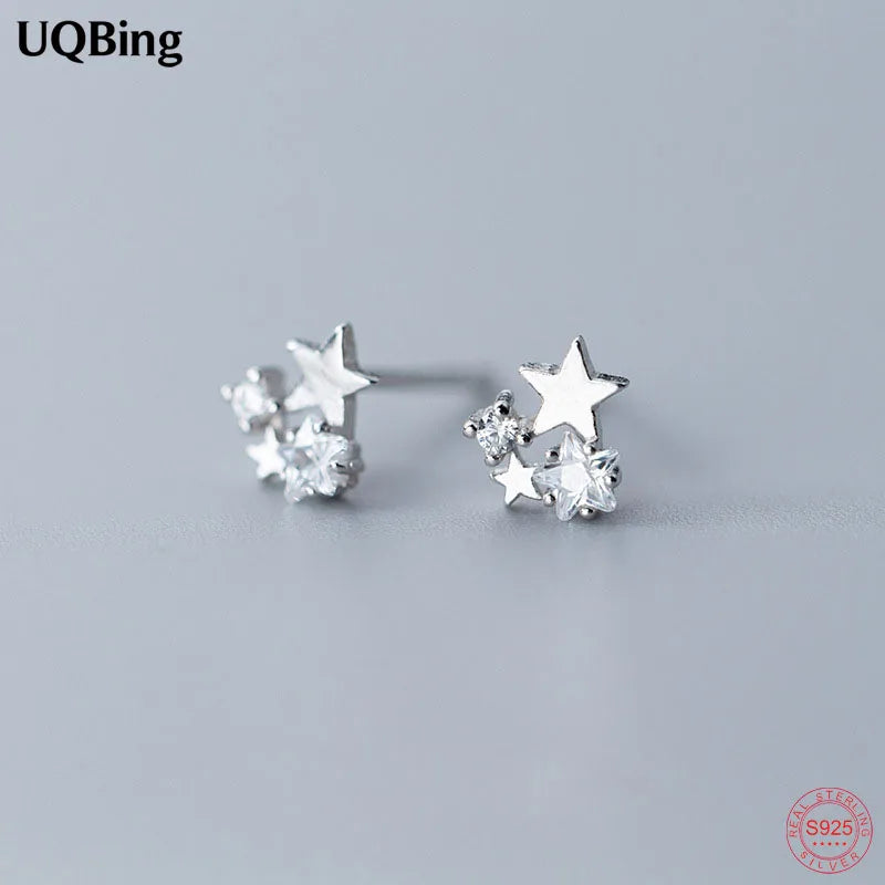 Add a touch of celestial charm with these stunning 925 sterling silver ear stud earrings featuring CZ zircon pave stars. Perfect for adding a festive sparkle to your holiday look.