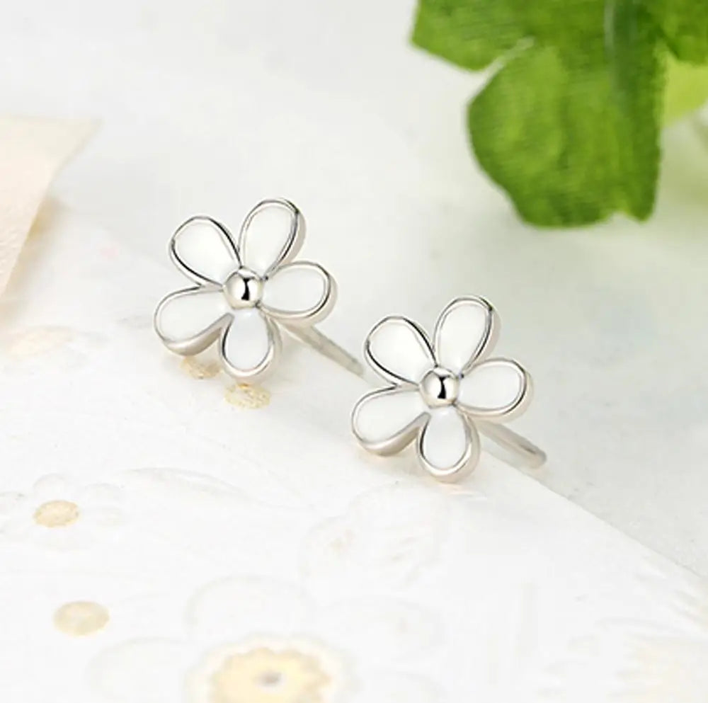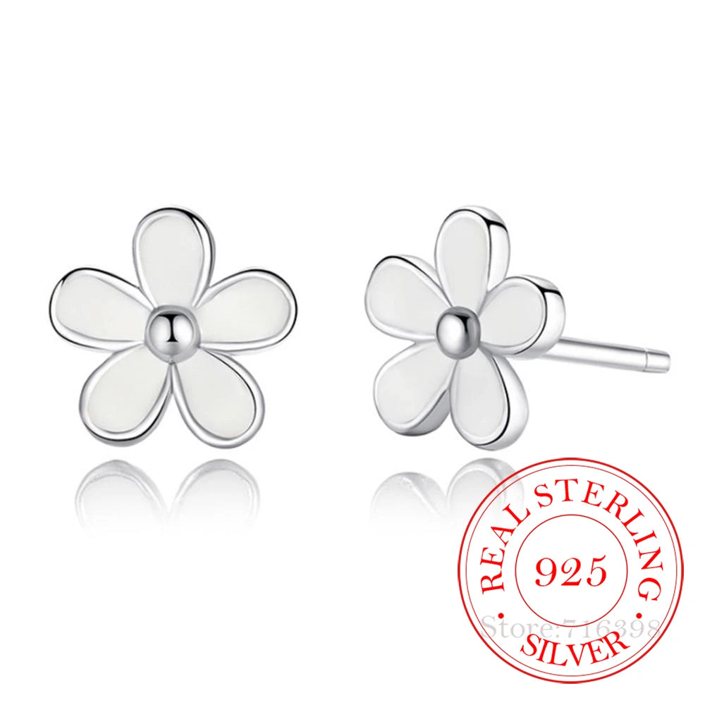 925 Silver Daisy Stud Earrings For Women Kids Wedding Gift