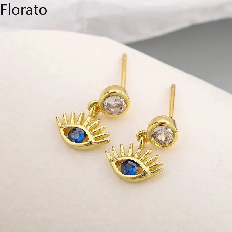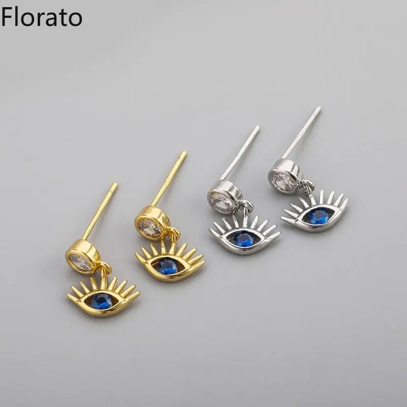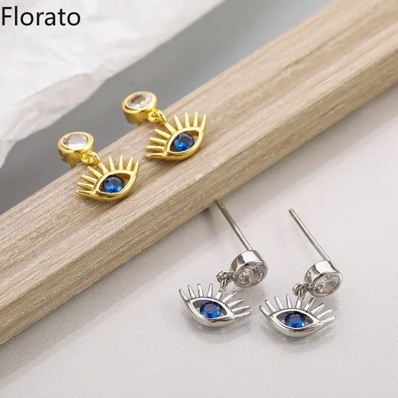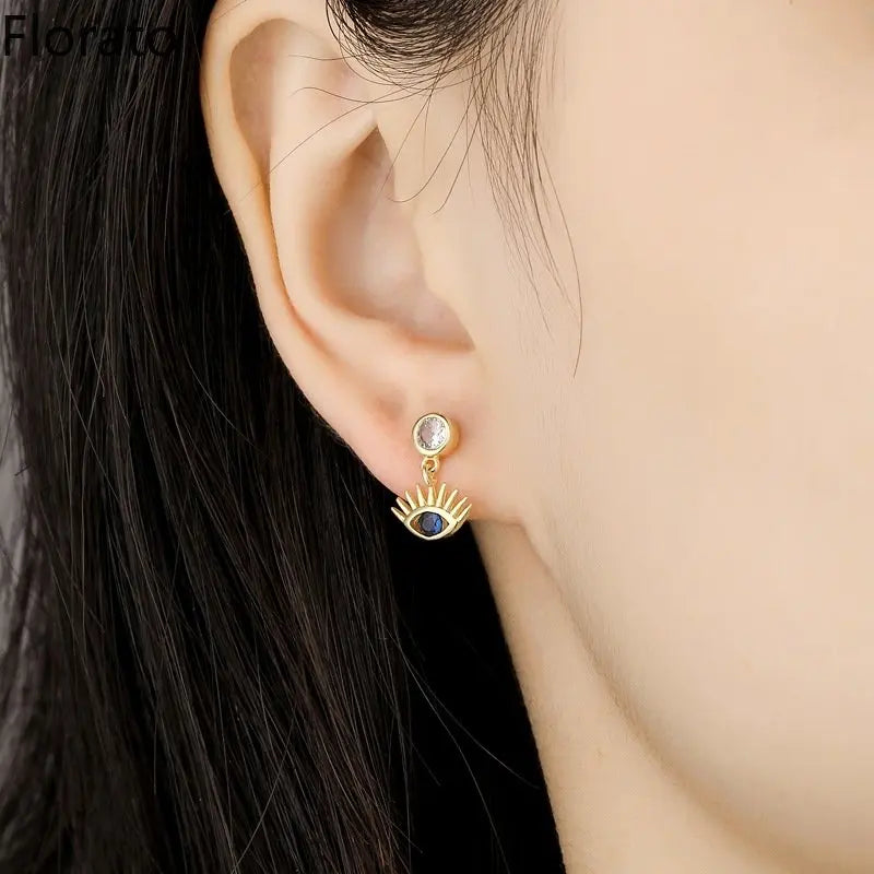 These elegant stud earrings feature crystal zircon Devil's Eye pendants on 925 sterling silver ear needles. Perfect for adding a touch of sophistication to any outfit.