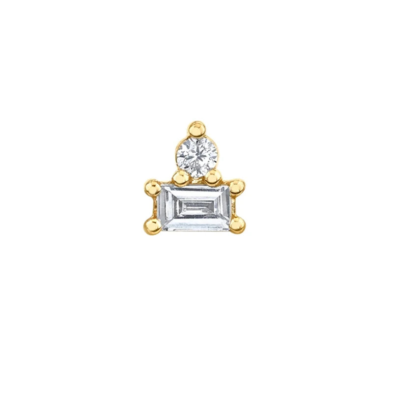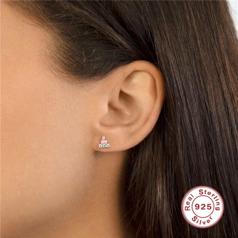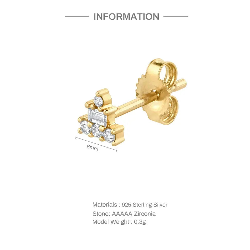 Add a touch of elegance with these mini piercing earrings made of 925 sterling silver. The double geometric design with zircon stones is perfect for everyday wear.