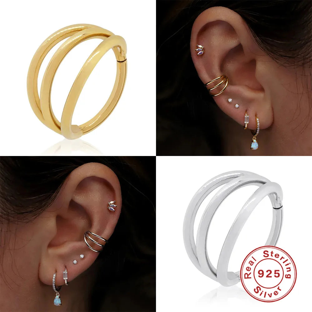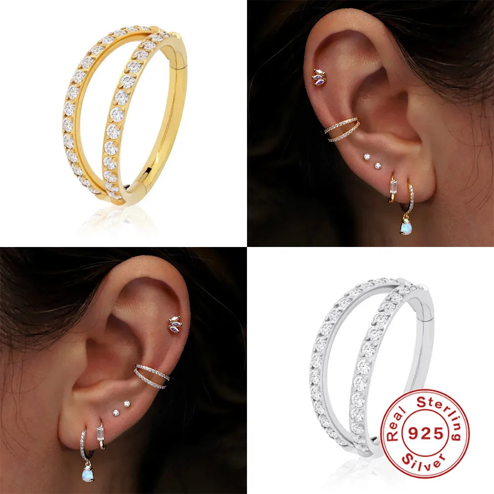 Enhance your style with these unique double-layer stud earrings made from 925 sterling silver. Can be worn as a cartilage piercing or nose ring for a chic look.