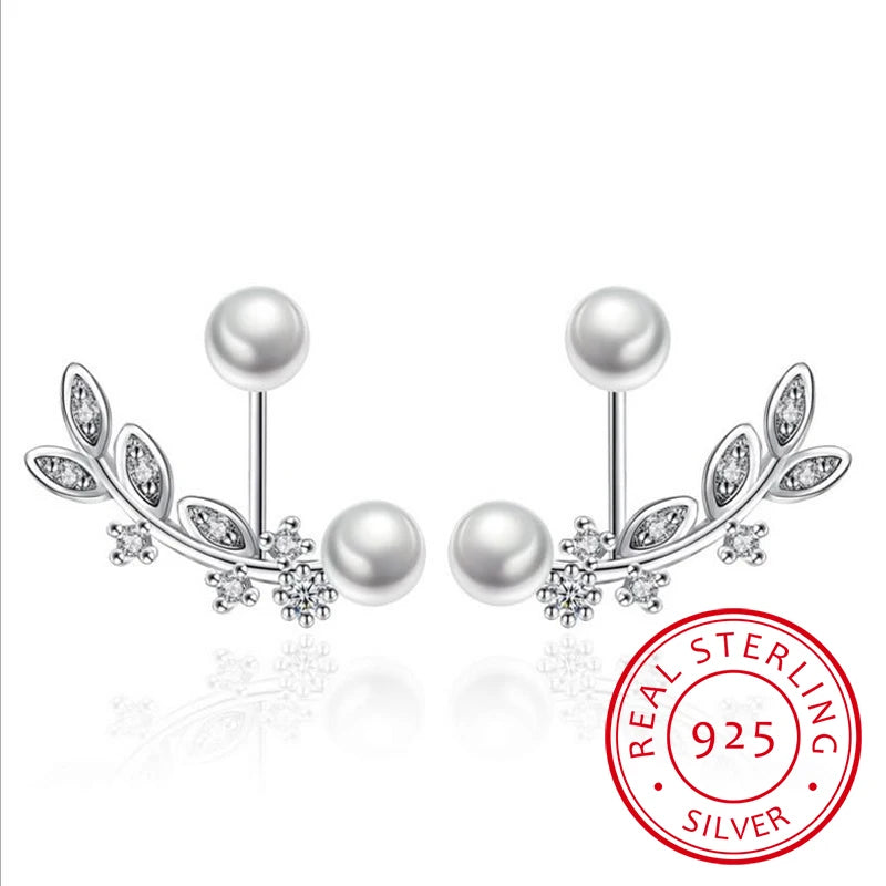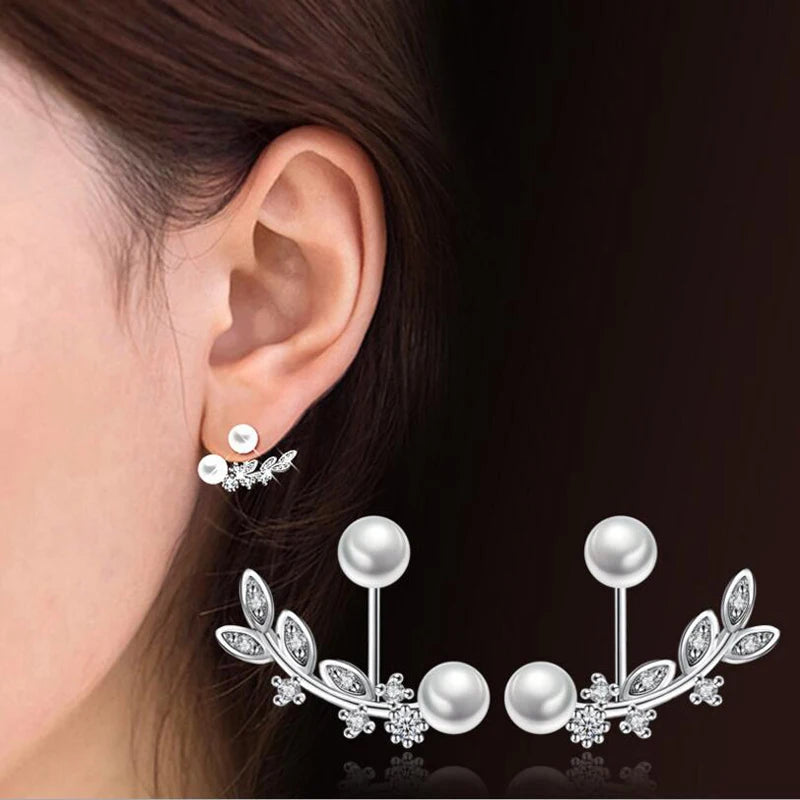 Elegant double sided earrings with zirconia pearl studs. Made of 925 sterling silver. Perfect for adding a touch of sophistication to your look.