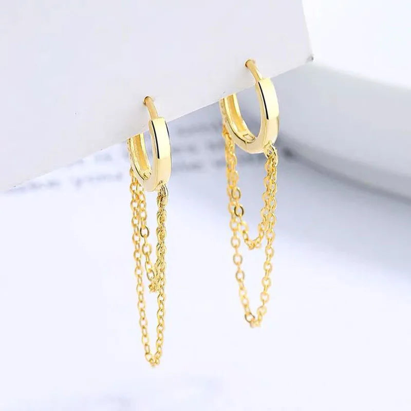 These double stranded earrings are made of 925 sterling silver, perfect for women who love Korea style jewelry. Ideal for birthdays and gifts.
