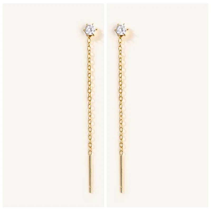 These elegant 925 sterling silver drop long hanging earrings are perfect for women and girls. They feature tassel studs and make a stylish accessory for any occasion. Ideal as a Christmas gift.