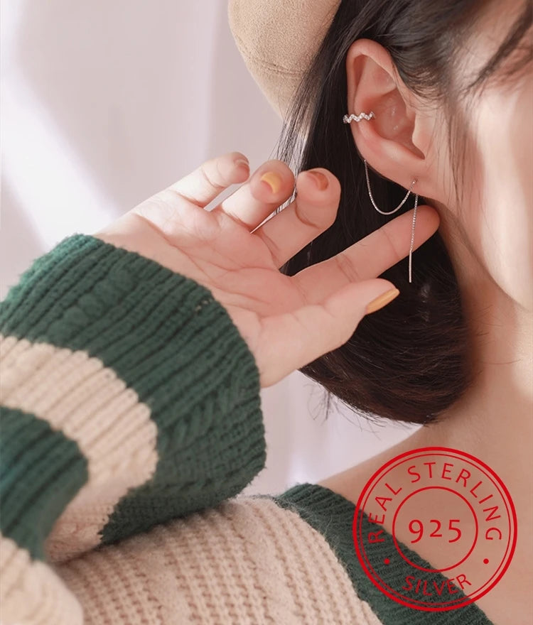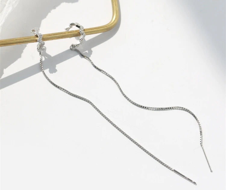 These stunning 925 sterling silver ear clip earrings feature long tassels and sparkling zirconia accents. The elegant design is perfect for women who appreciate fine jewelry.