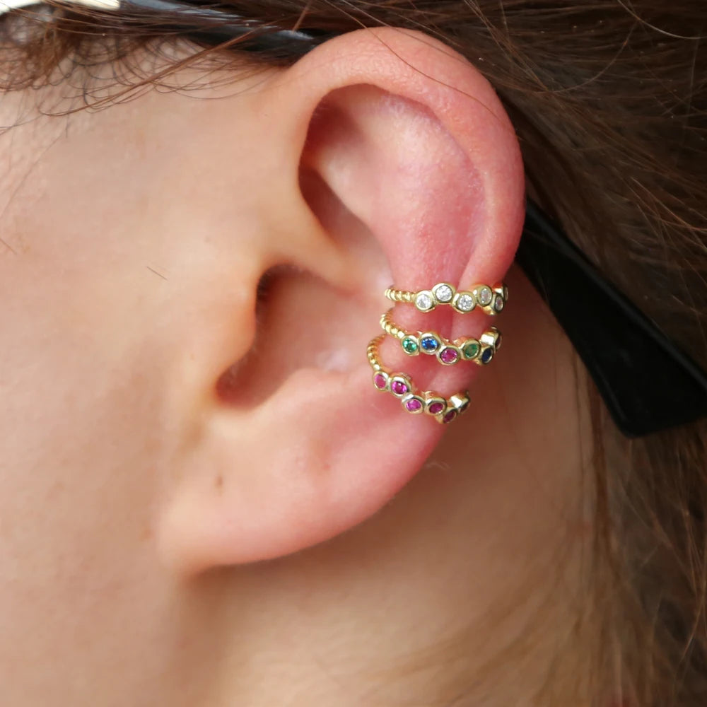 Add a pop of color to your look with these rainbow-colored ear cuffs. Made from 925 sterling silver, these earrings feature a round CZ circle design and are perfect for stacking.