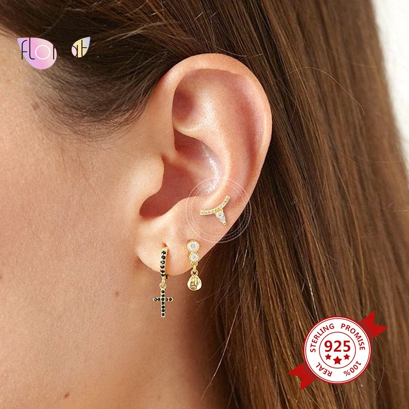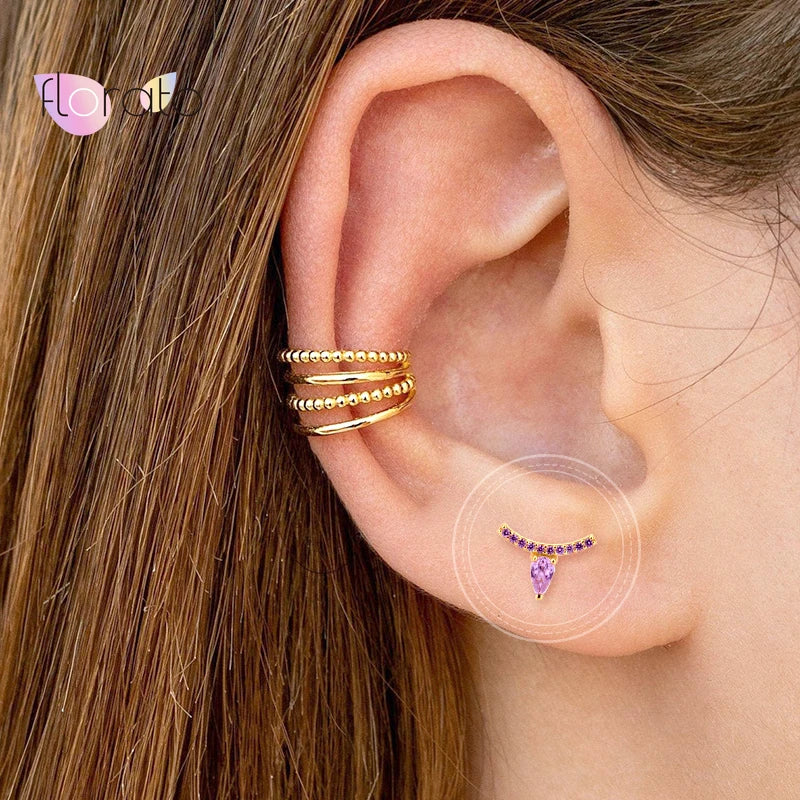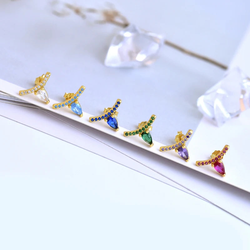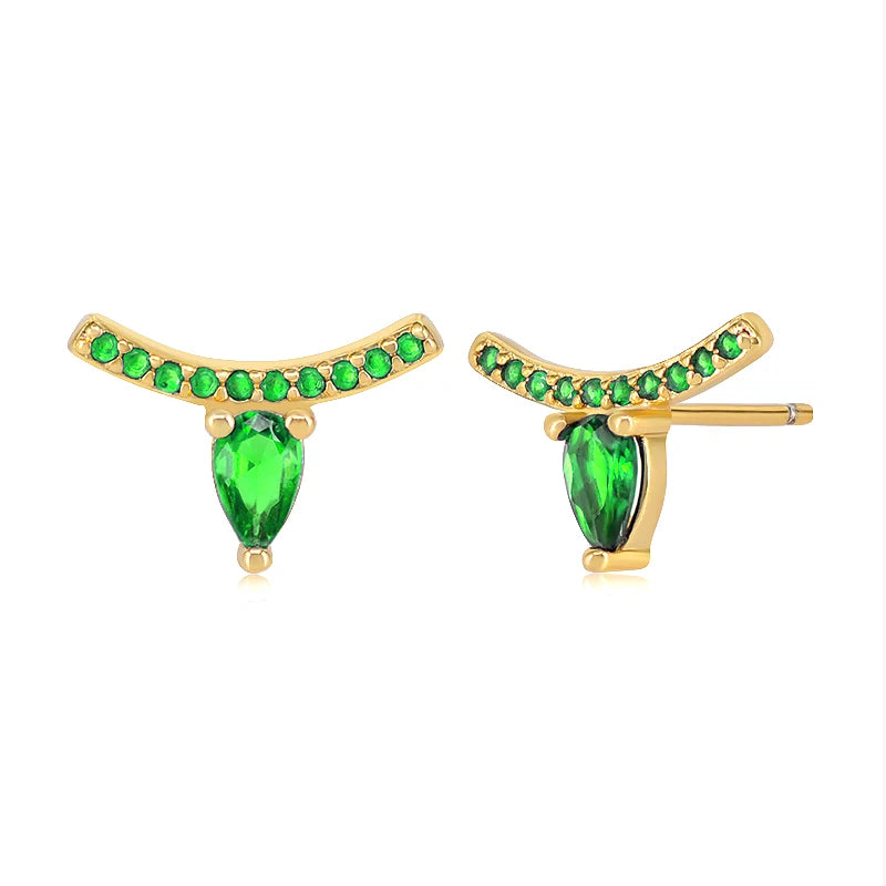 925 Silver Ear Needle Green Purple Zircon Stud Earring