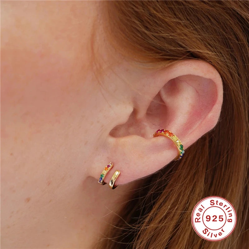 Add a pop of color to your look with these stunning 925 sterling silver earcuffs featuring colorful cubic zirconia stones. Perfect for both left and right ears, these clips add a touch of glamour to any outfit.