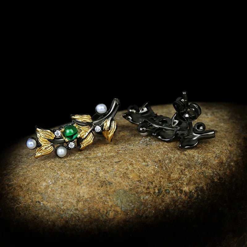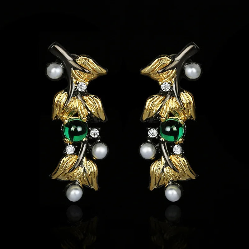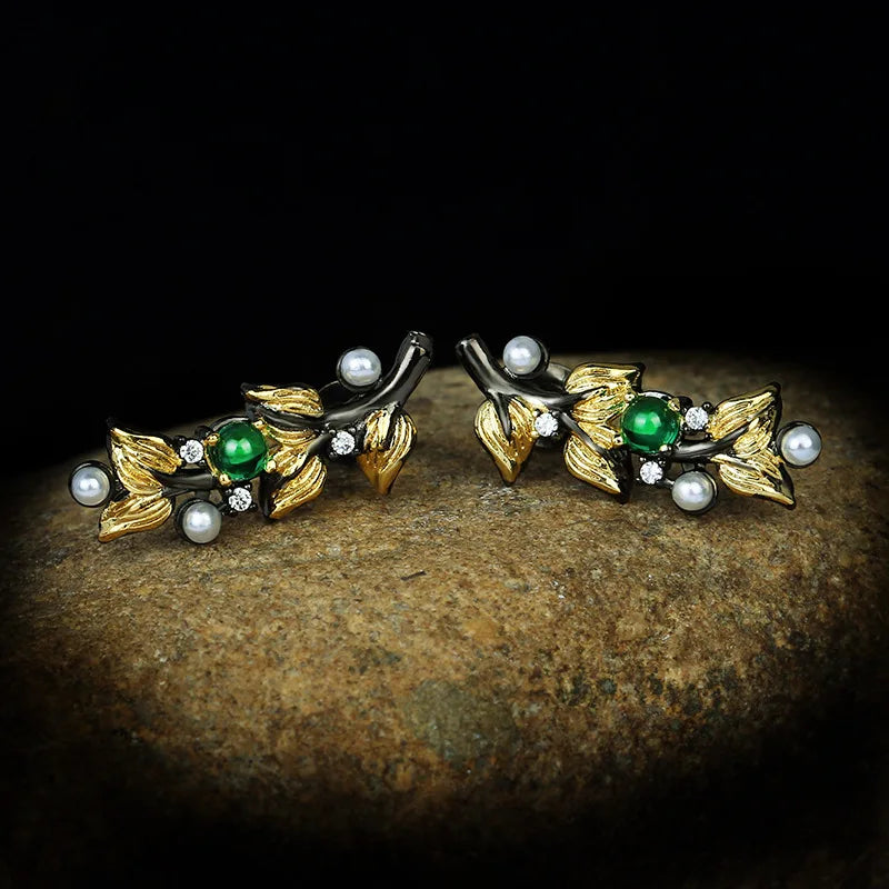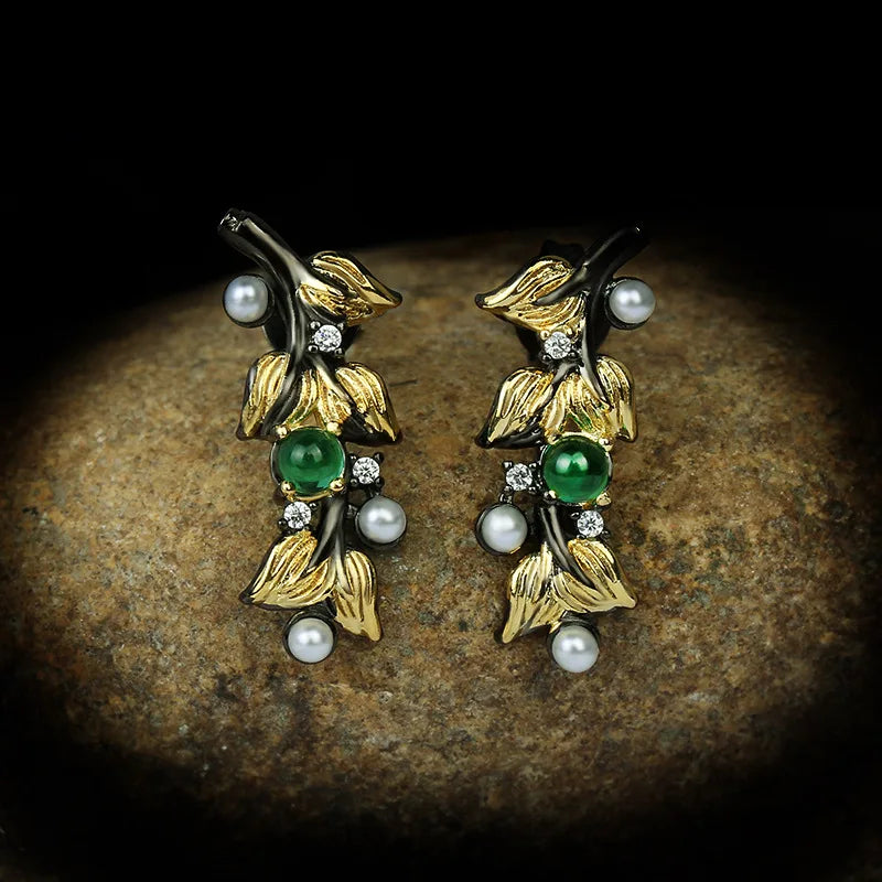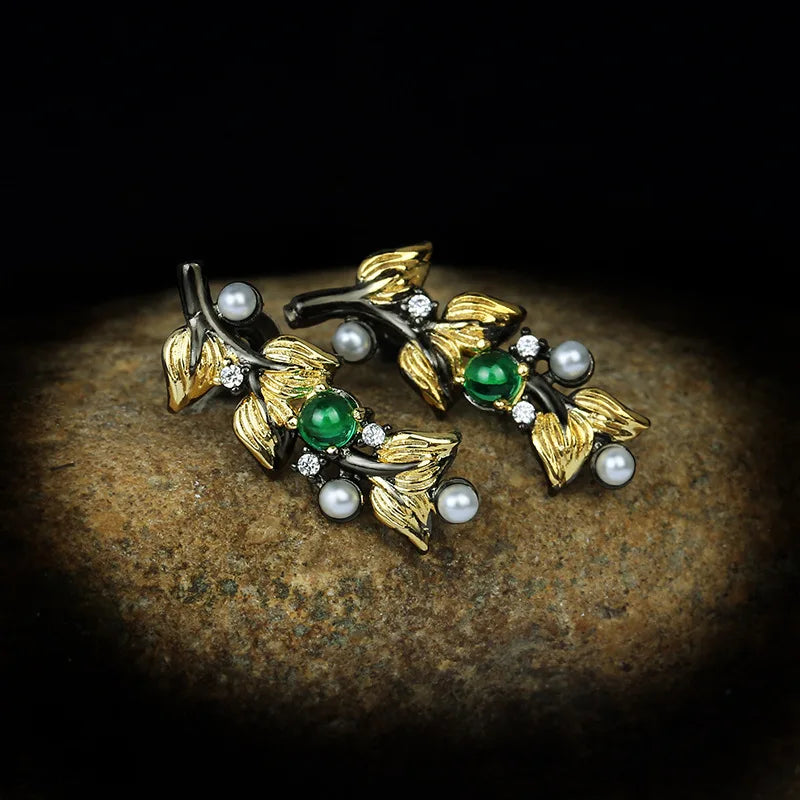 Add a touch of elegance with these 925 silver earrings featuring inlaid pearls and green zircon. Perfect for weddings or special occasions.