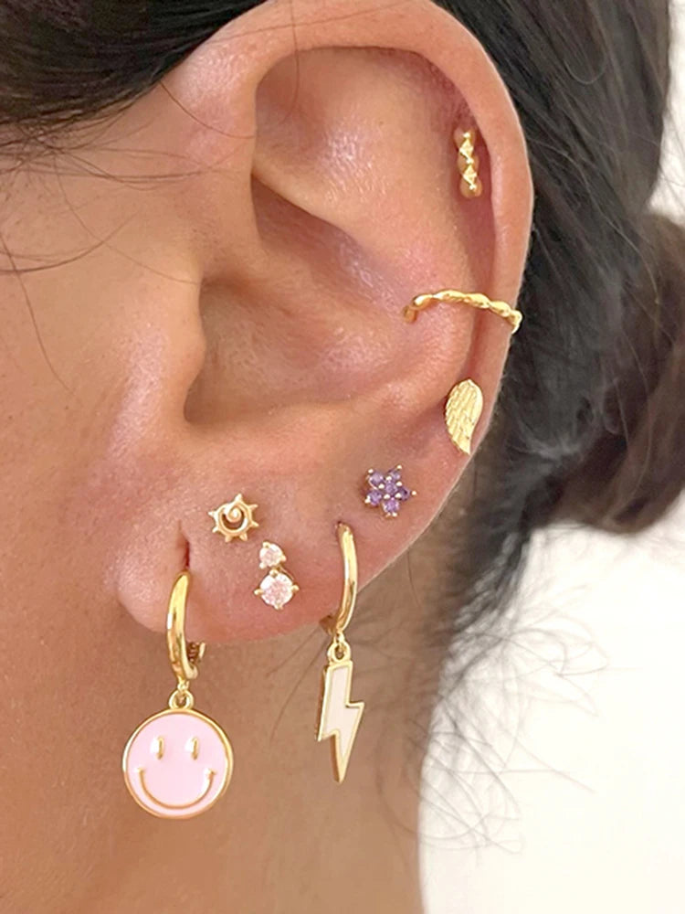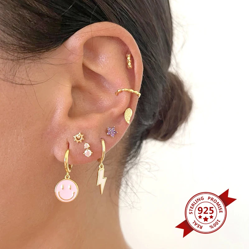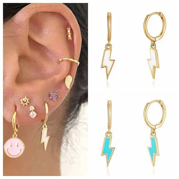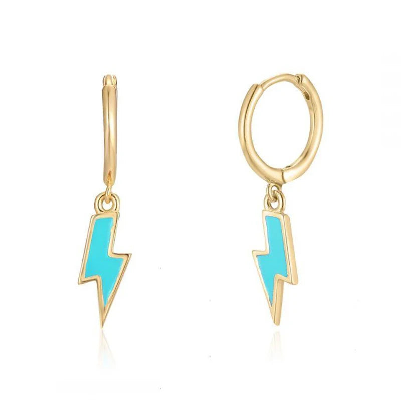Chic and delicate lightning pendant earrings made of 925 sterling silver with enamel drop oil. Perfect for everyday wear or special occasions.
