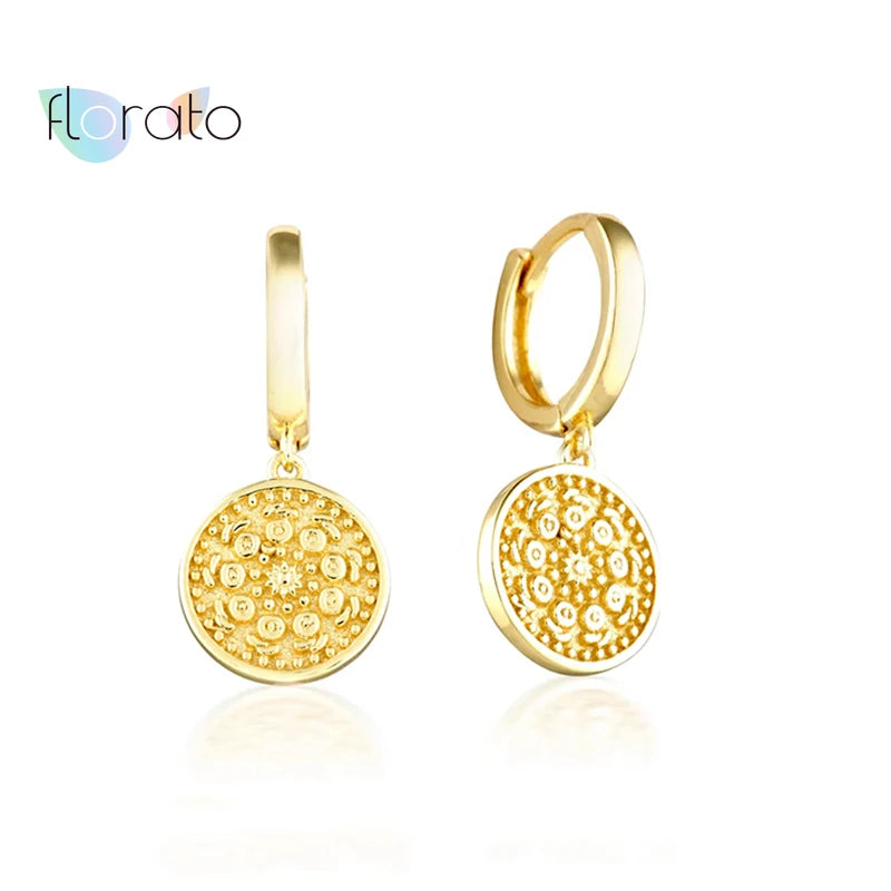 Add a touch of elegance to your look with these hoop earrings featuring a flower embossed coin design. The colorful crystal and feather pendant add a unique and stylish flair to these earrings. Made of 925 silver, these earrings are perfect for women who love to accessorize.