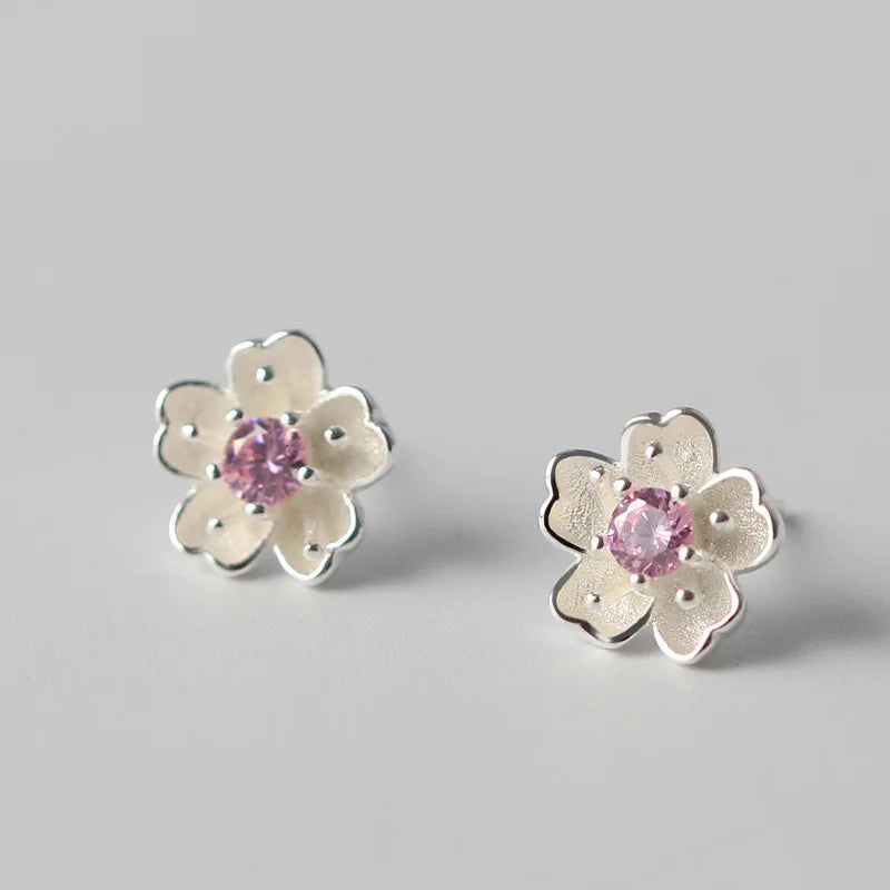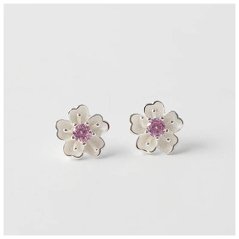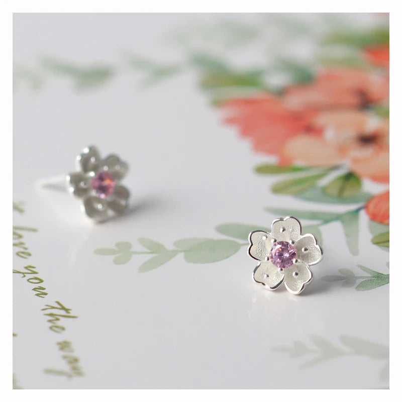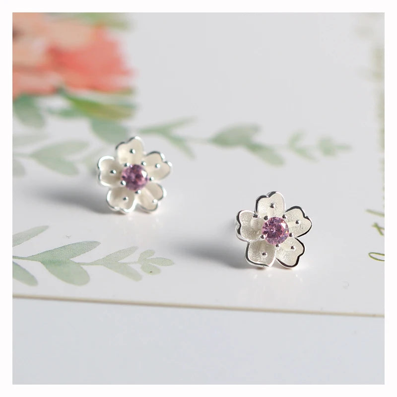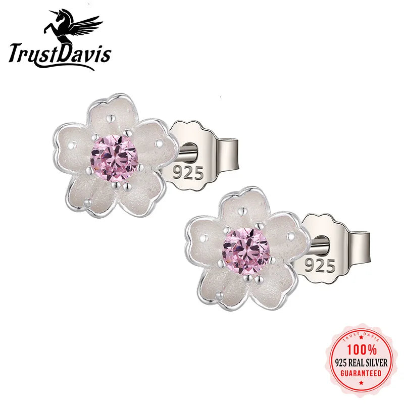 Add a touch of elegance with this 925 sterling silver flower stud earring featuring a pink CZ stone. Perfect for teens, girls, and ladies.