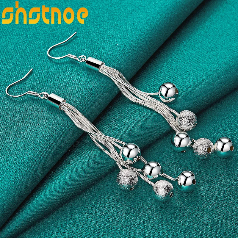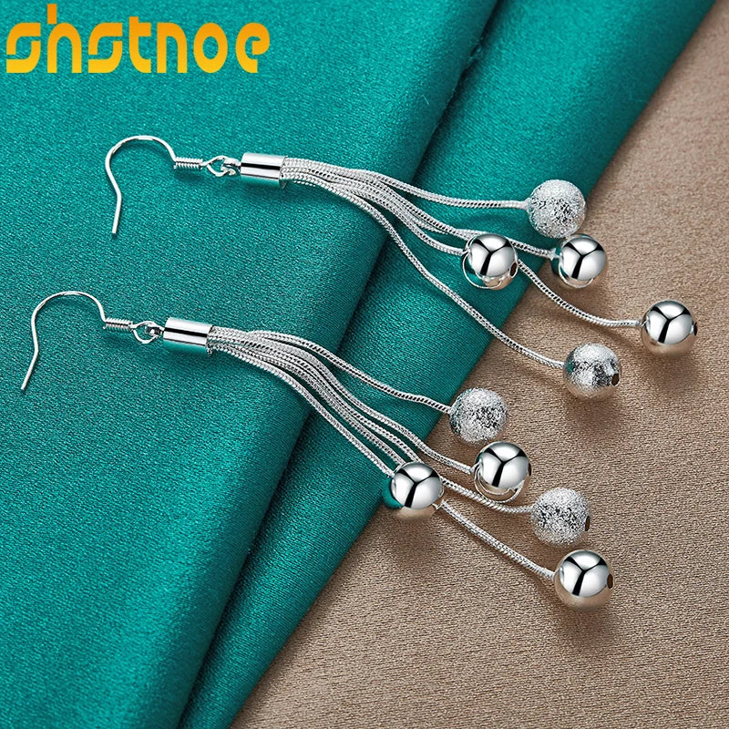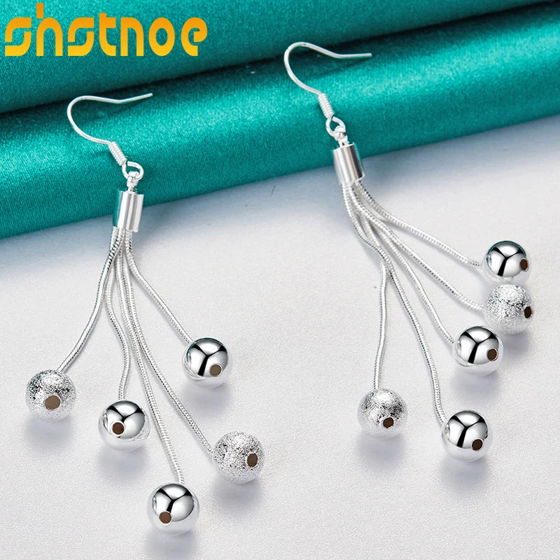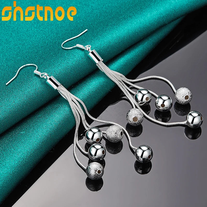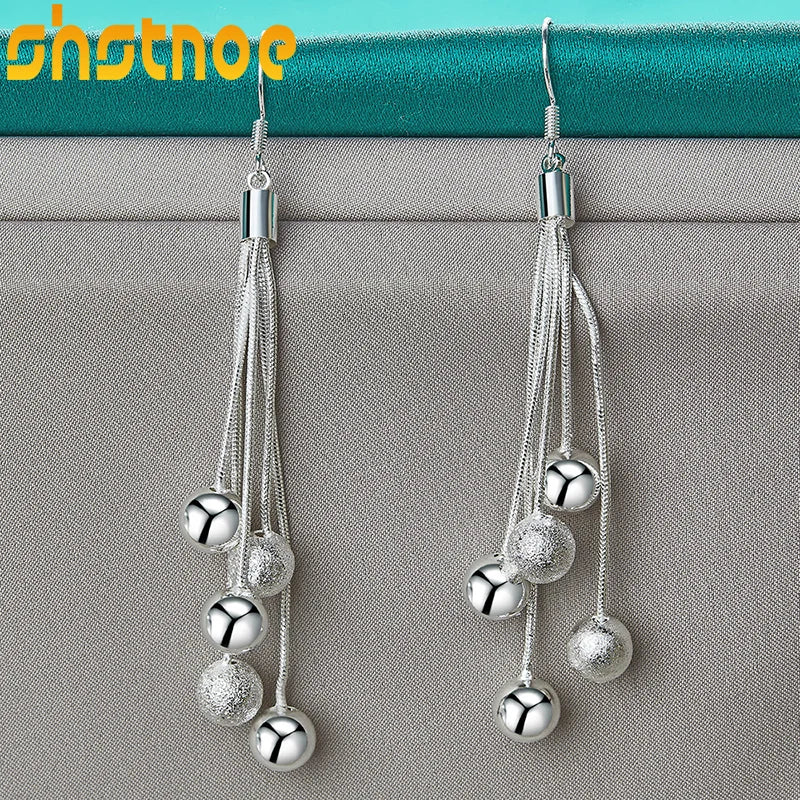 Elegant drop earrings crafted from 925 sterling silver with frosted smooth balls on a snake chain. Perfect for parties, engagements, and weddings.