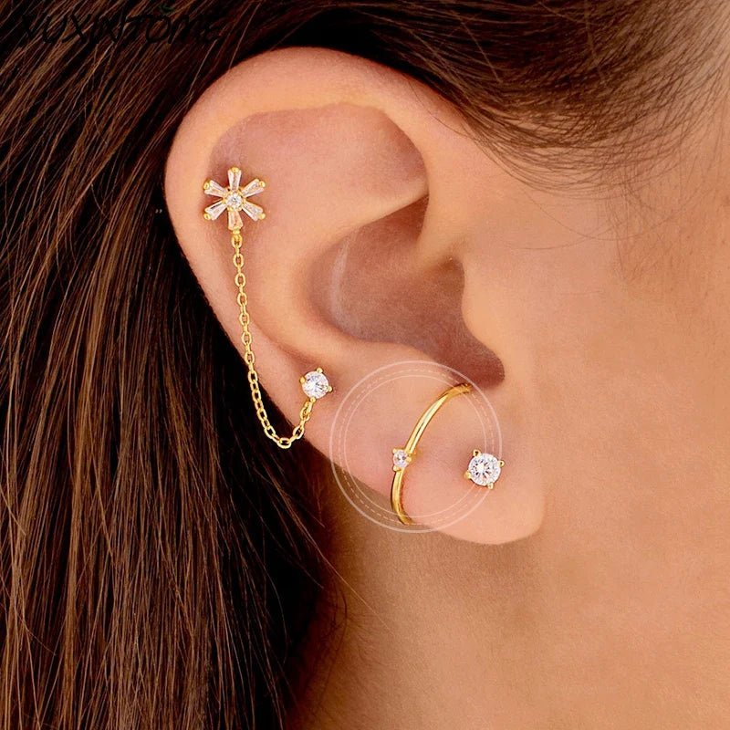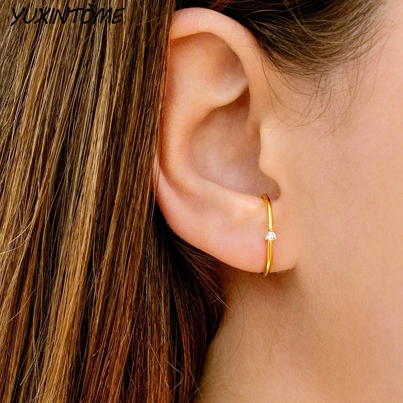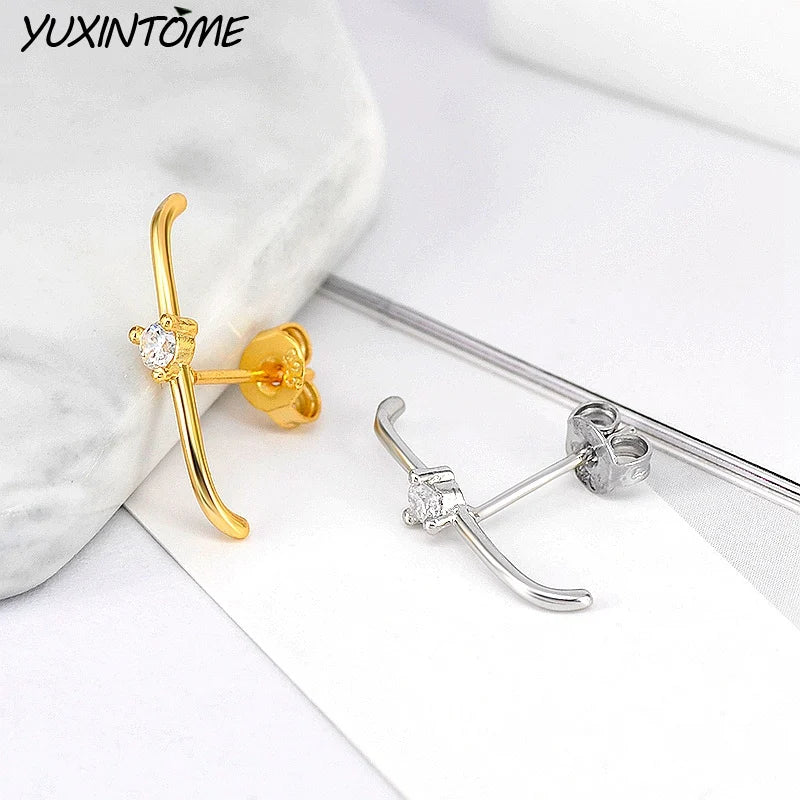 These stunning 925 sterling silver earrings feature a minimalist geometric design with 24K gold accents. Perfect for women who appreciate elegant jewelry, these ear studs make a stylish gift.