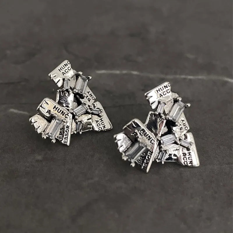 Make a bold statement with these geometric patch heart splicing stud earrings. Crafted from 925 sterling silver, these earrings are perfect for adding a punk and hip hop vibe to your look.