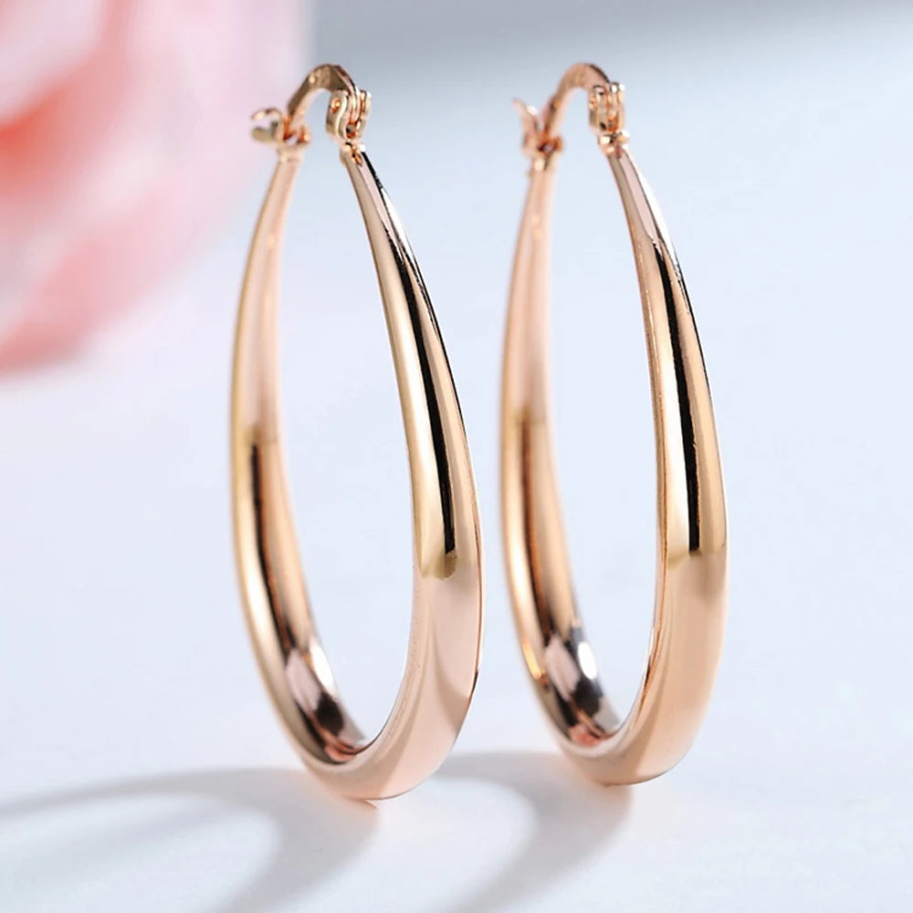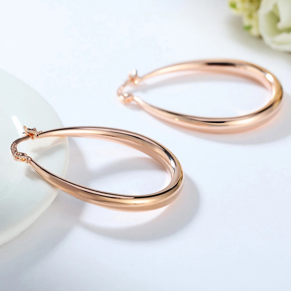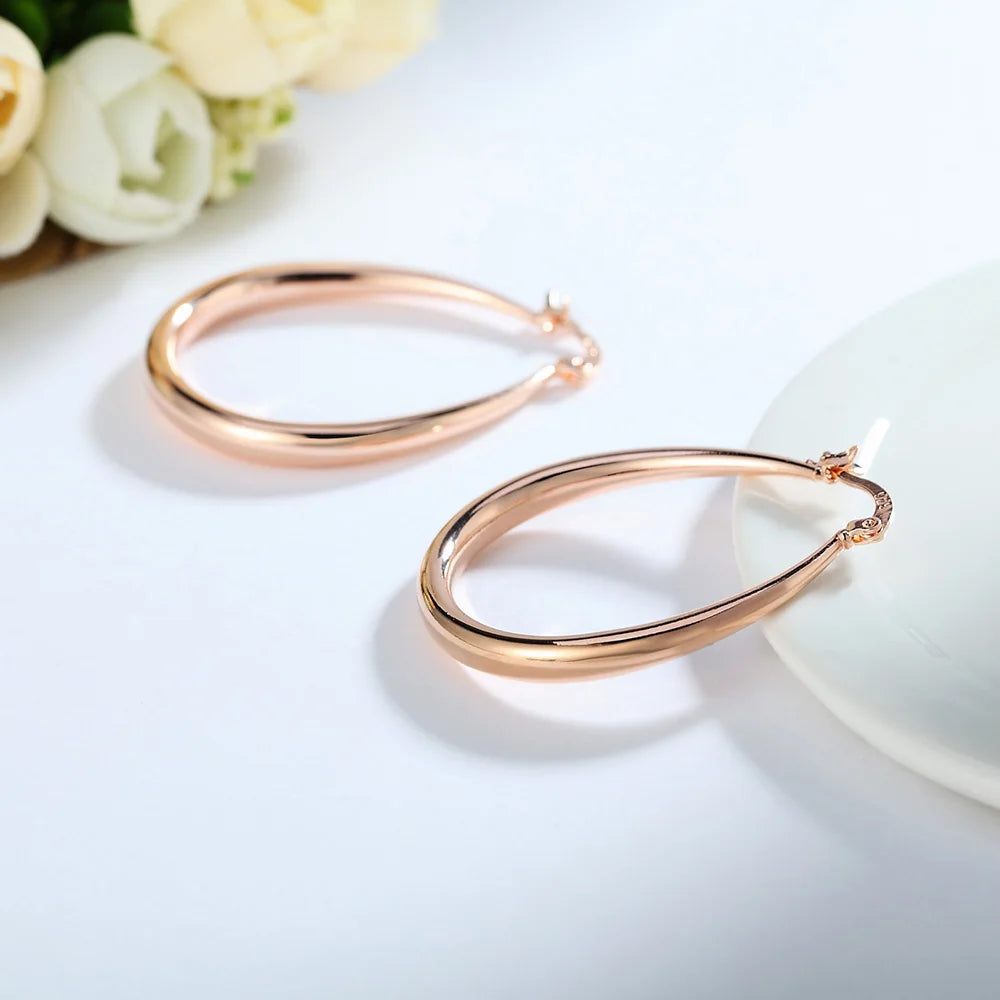 These elegant hoop earrings are made of 925 sterling silver with a choice of gold, rose gold, or silver plating. They have a U shape design, measuring 44MM in diameter, making them a perfect statement piece of jewelry for any woman or lady. Ideal as a gift for a special occasion or to treat yourself.