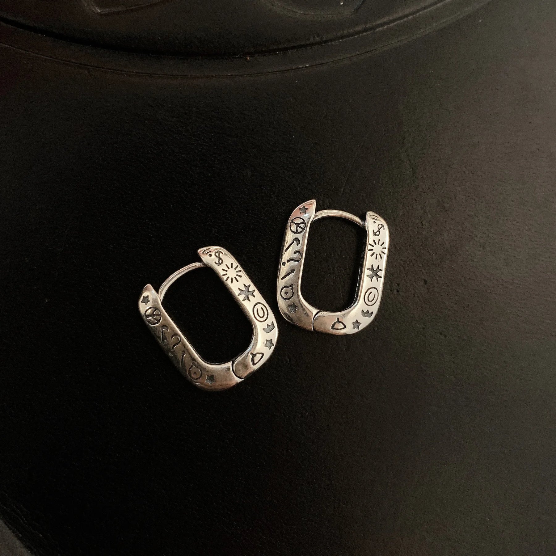 Add a touch of hot graffiti style with these 925 sterling silver hoop earrings. These earrings are perfect for a sexy and stylish look. Makes a great gift for any occasion.