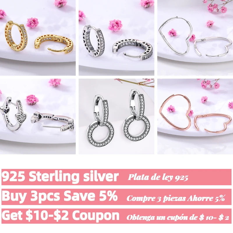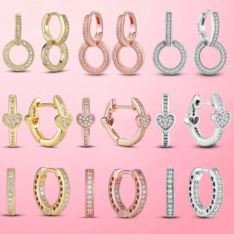 Chic and elegant 925 silver hoop earrings featuring heart-shaped CZ zircon for a glamorous look.
