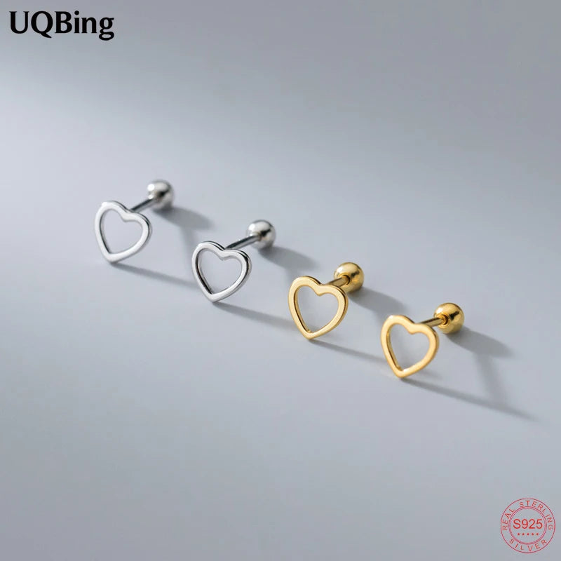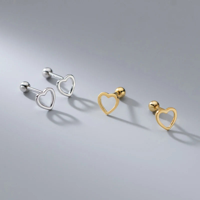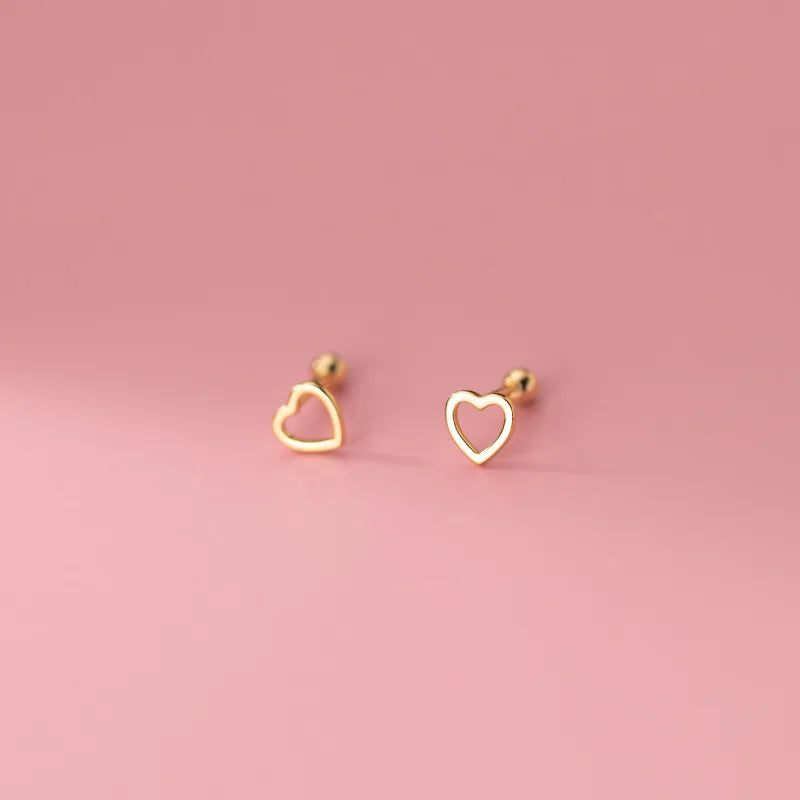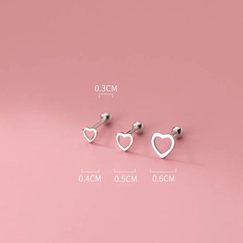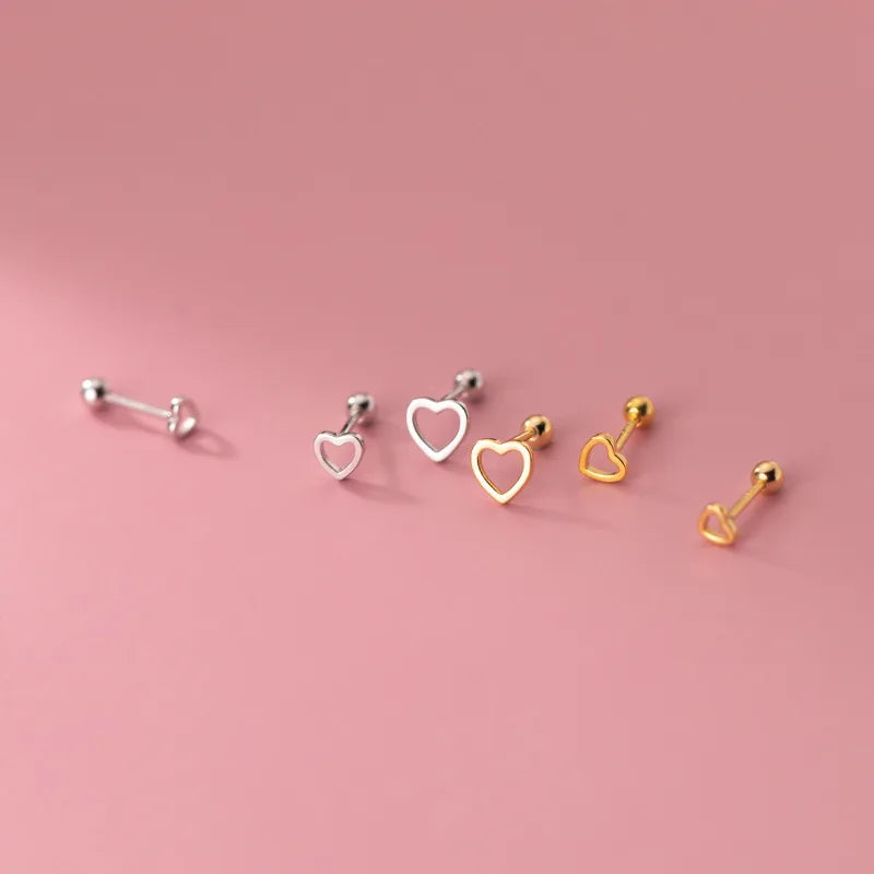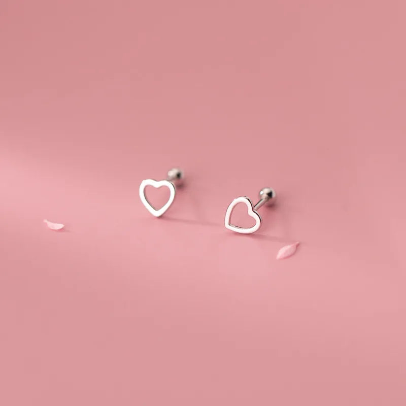 These heart shape stud earrings are crafted from high-quality 925 sterling silver, making them a charming addition to any outfit. The screw design adds a touch of uniqueness to these mini minimalist earrings.