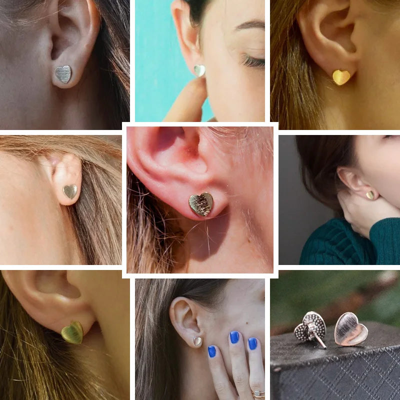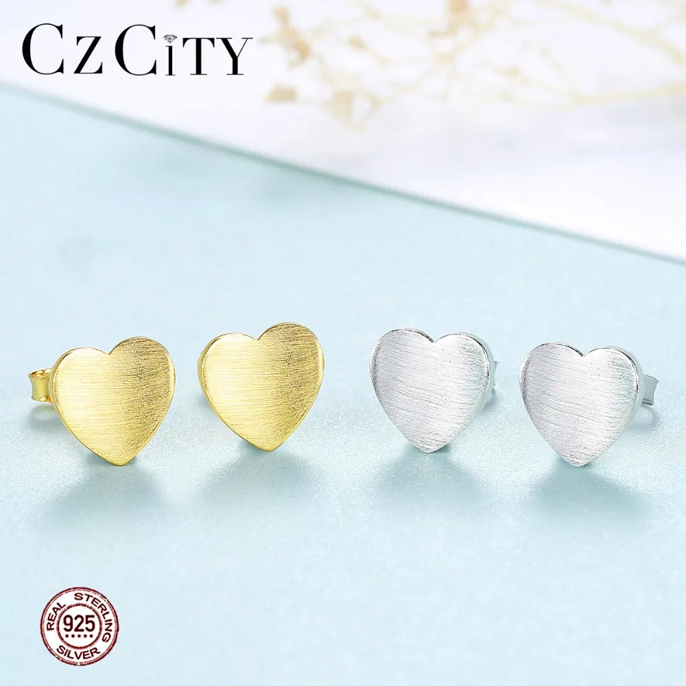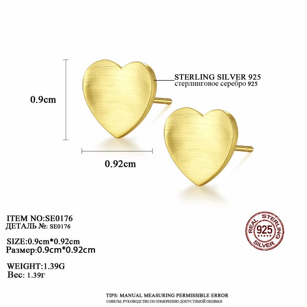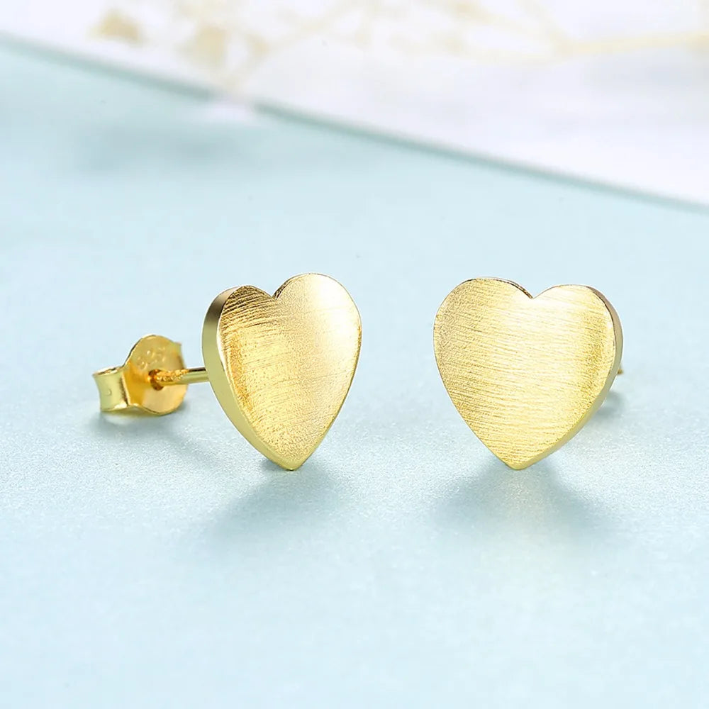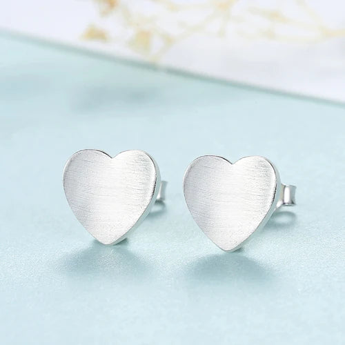 Delicate heart-shaped stud earrings made of 925 sterling silver with a brushed finish. Ideal for women who love minimalist jewelry.
