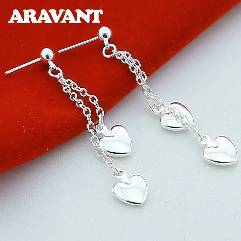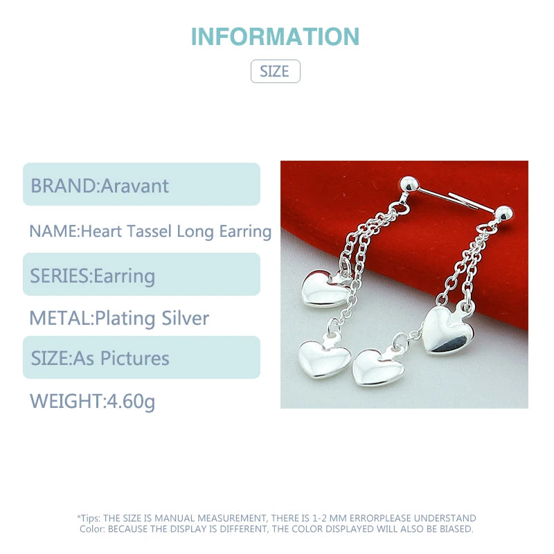 These elegant 925 silver earrings feature a love heart design with tassels, perfect for parties and as a Valentine's Day gift.