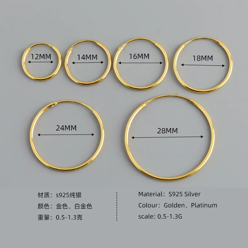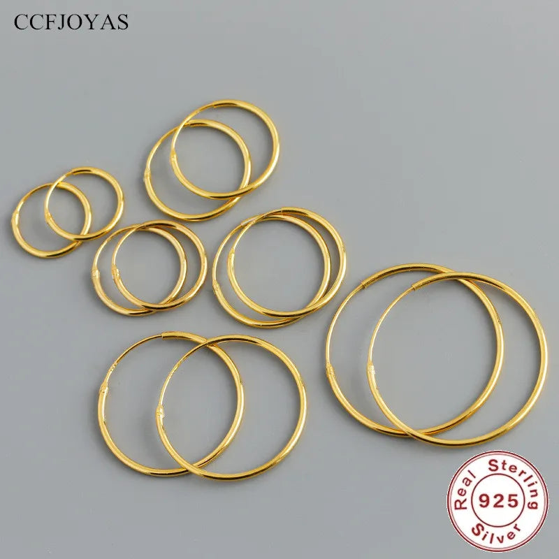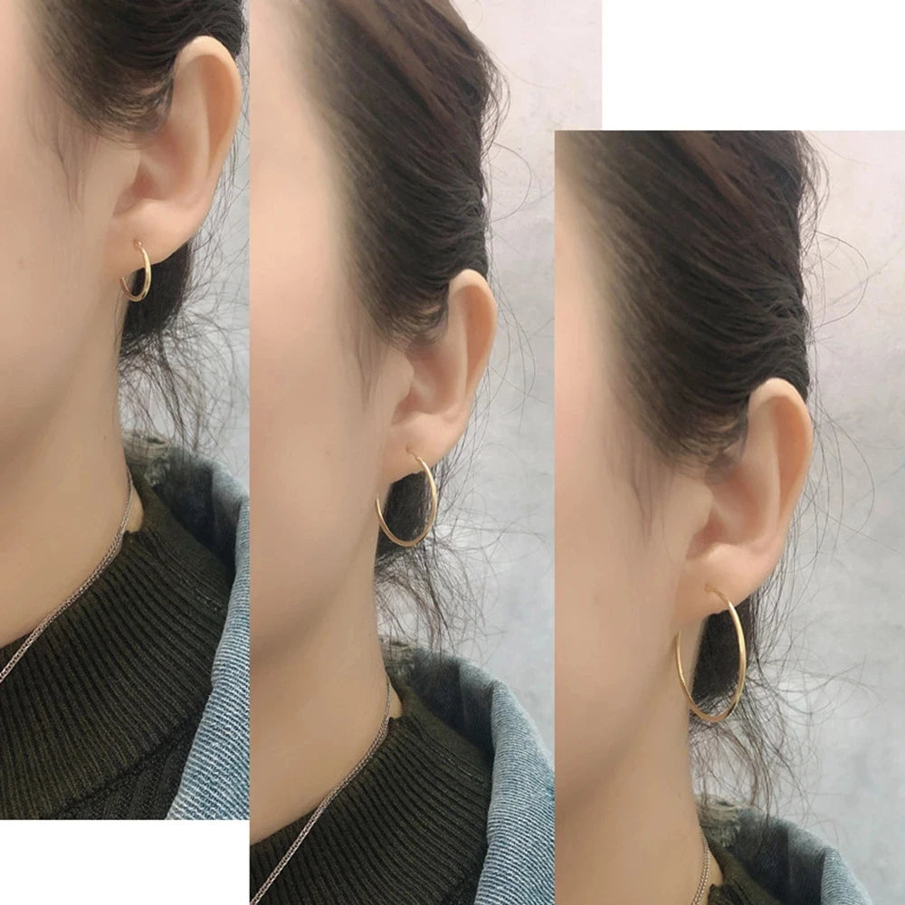 925 Silver Hip Hop Big Hoop Earrings Slim Round Earrings for Women