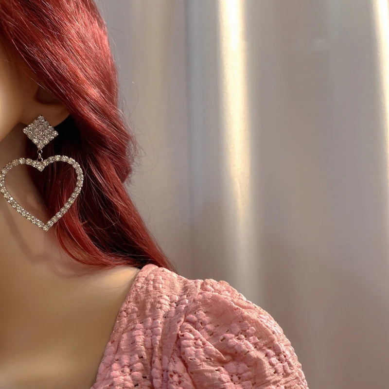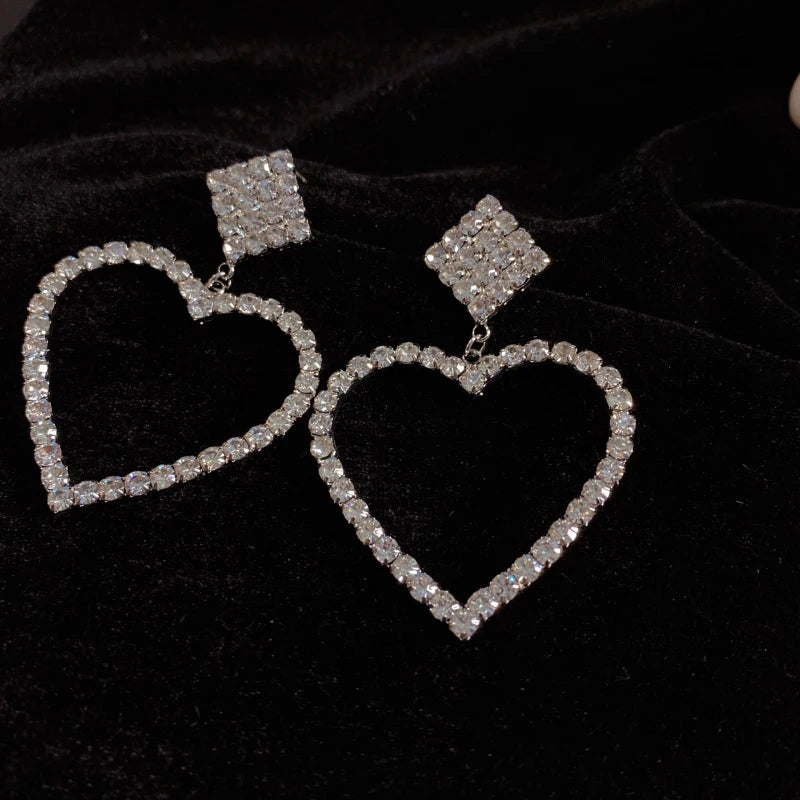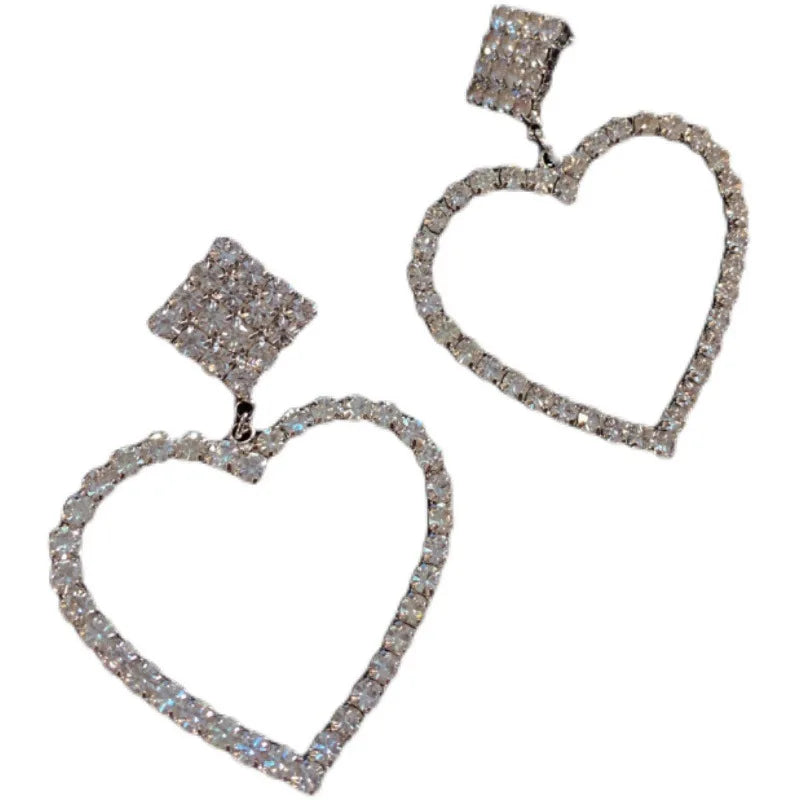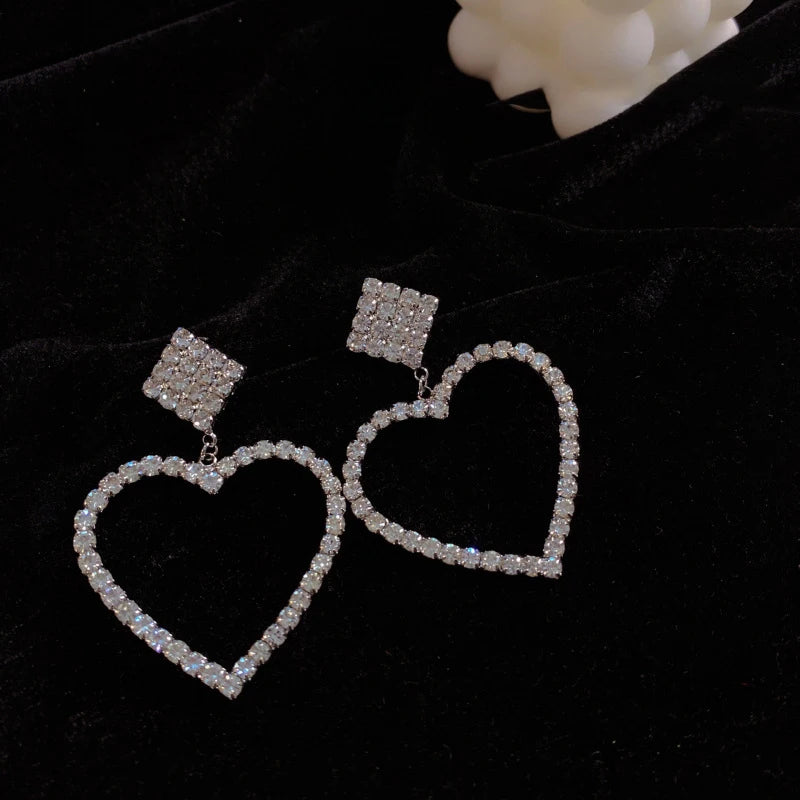 Chic and romantic stud earrings crafted from 925 sterling silver with geometric hollow heart square design and shimmering zircon stones.