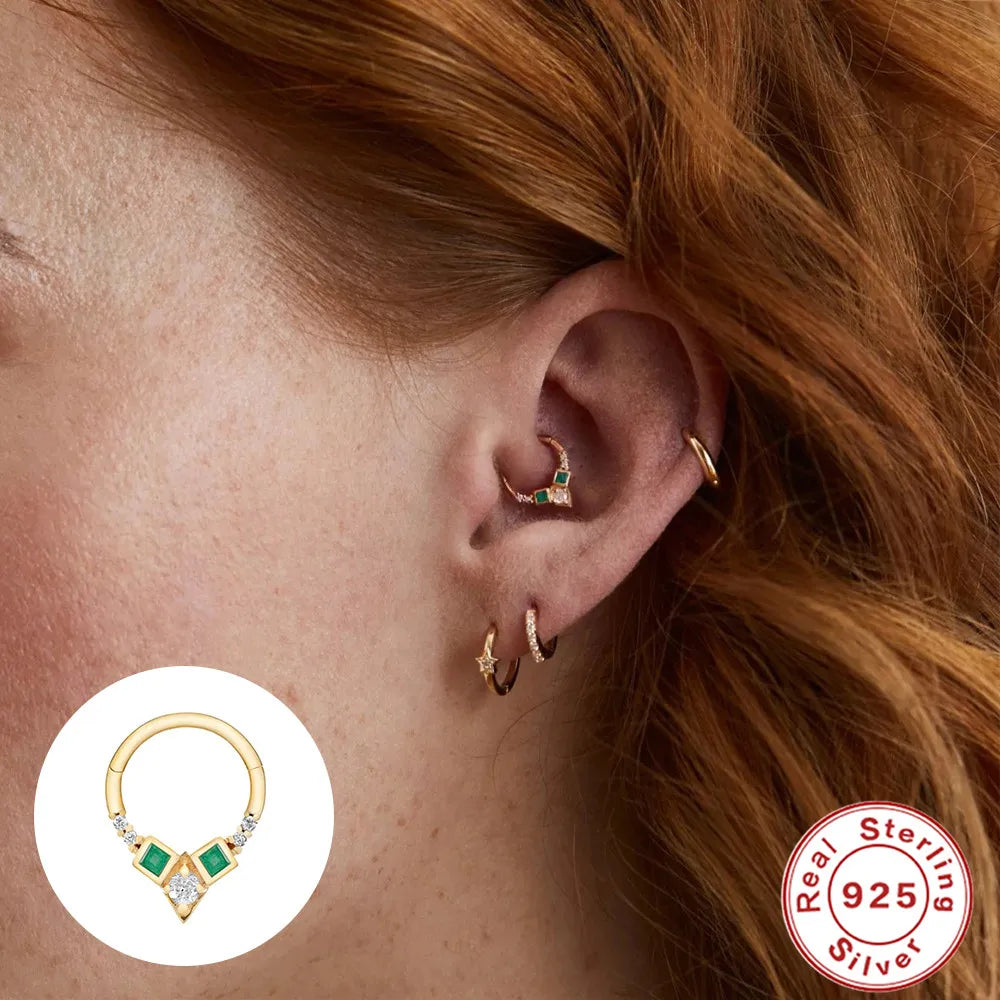 Add a touch of elegance with these sterling silver hoop earrings featuring zircon stones. Perfect for nose piercings and cartilage earrings.