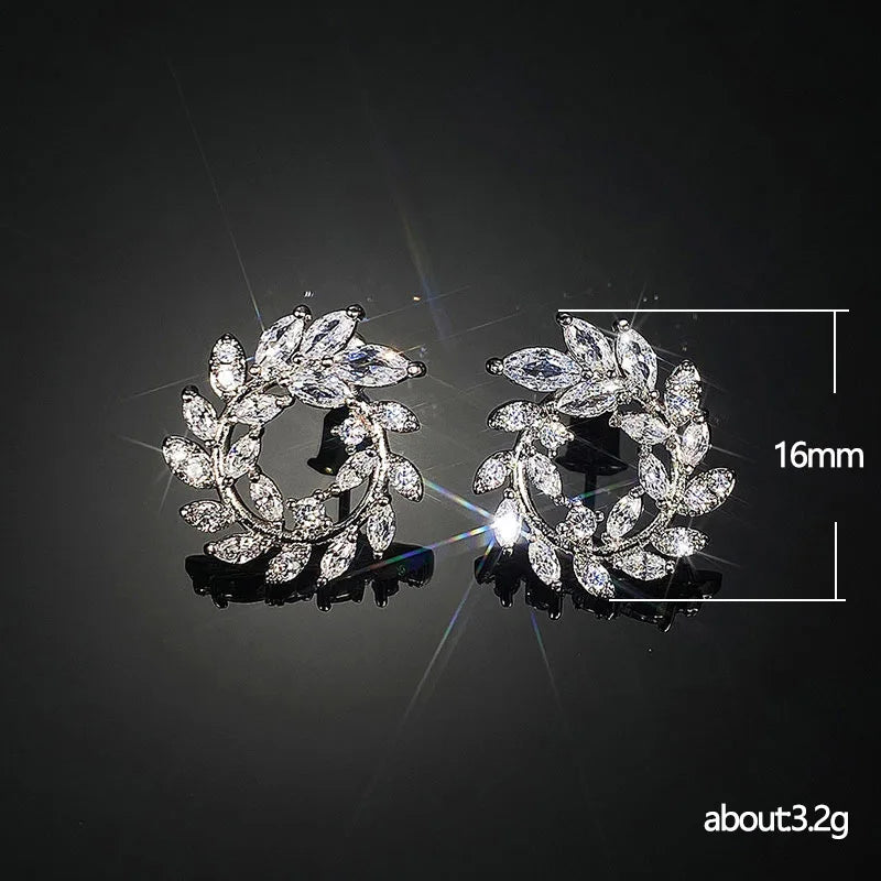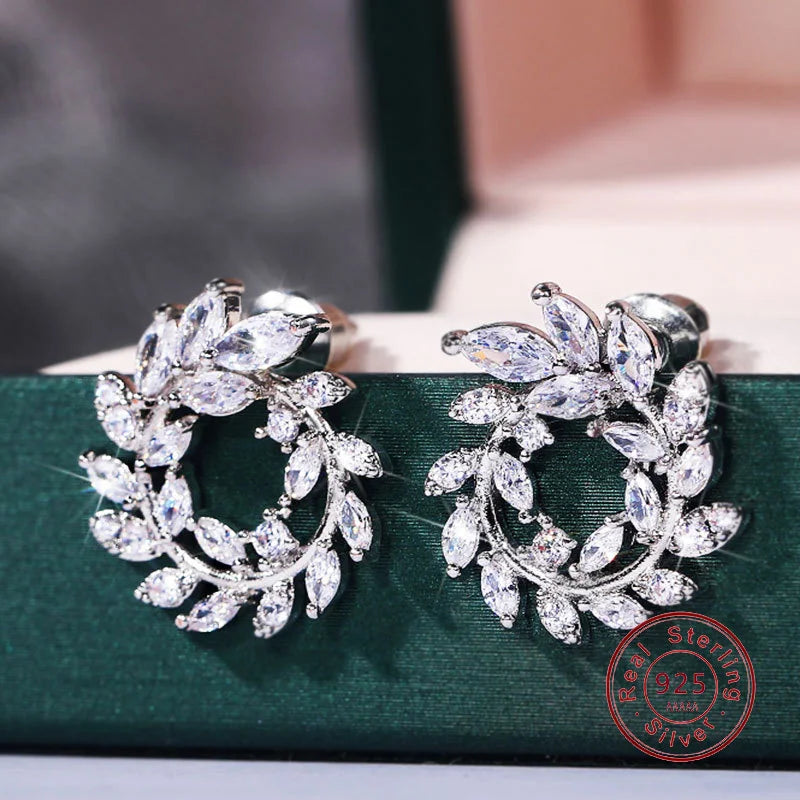 These elegant leaf-shaped earrings are crafted from 925 silver with a hollow design and crystal accents. Perfect for weddings or everyday wear.