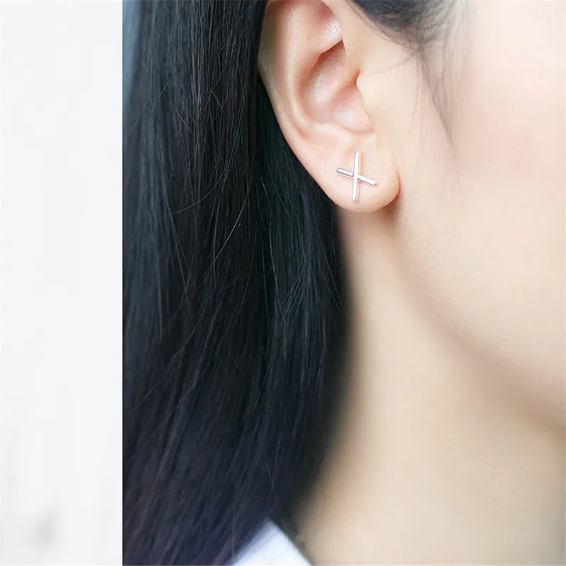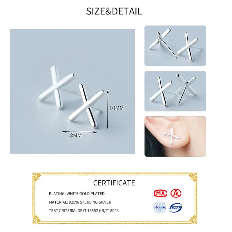 These elegant stud earrings are made of genuine 925 sterling silver with a sleek letter X design. They are perfect for everyday wear and can be paired with any outfit.