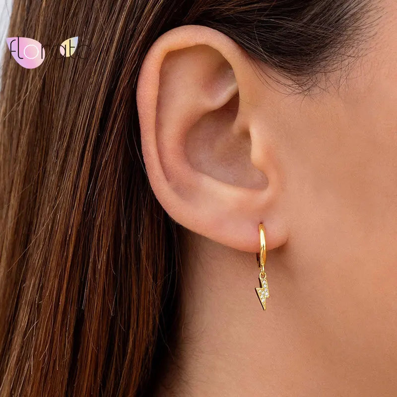 Add a touch of sparkle to your outfit with these lightning bolt charm earrings featuring cubic zirconia stones. Made of 925 sterling silver, these huggie earrings are perfect for everyday wear.
