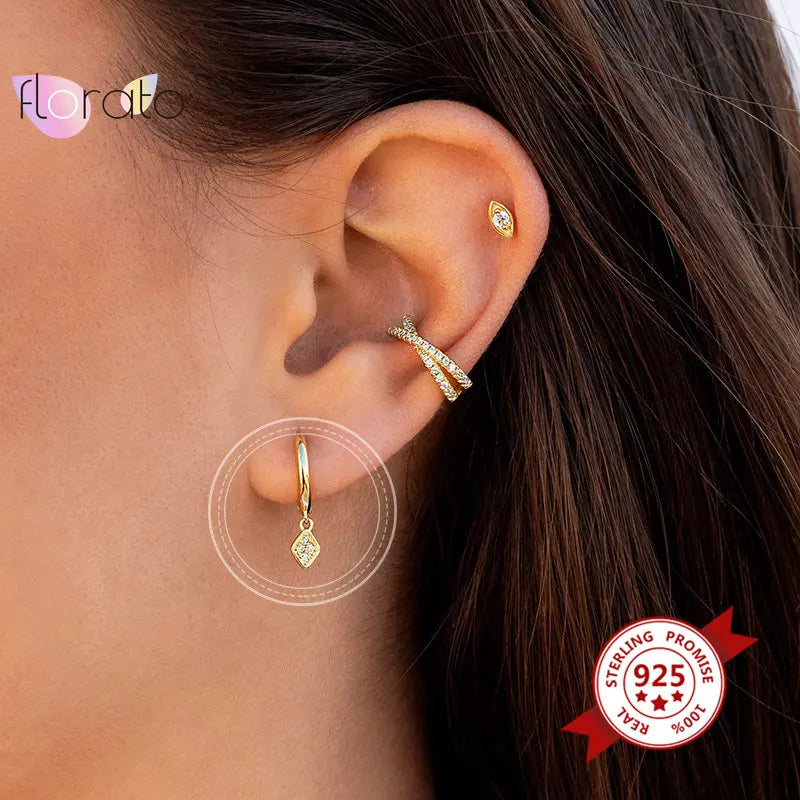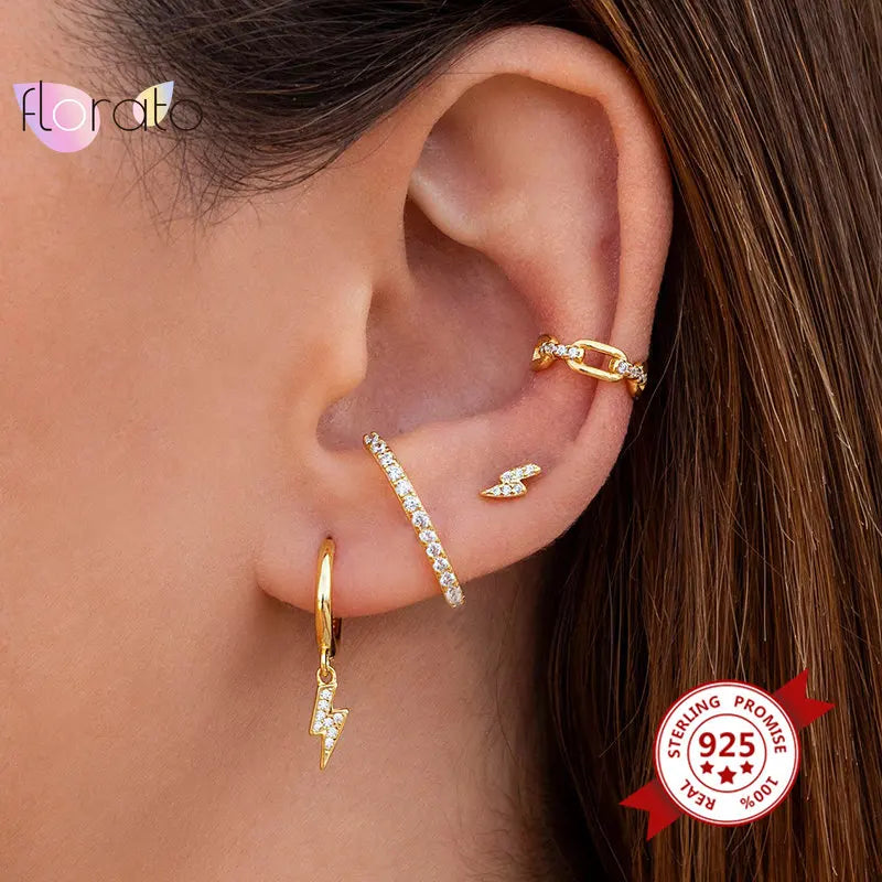 - 925 sterling silver lightning bolt charm earrings