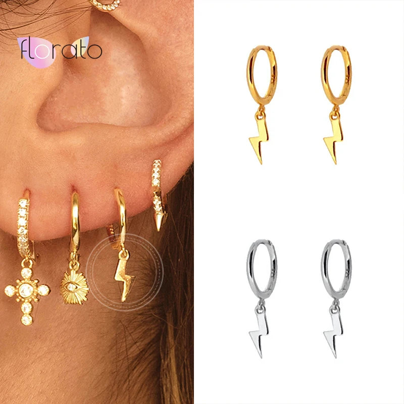 Enhance your style with these small hoop earrings featuring lightning design. Made of 925 sterling silver, suitable for any occasion.