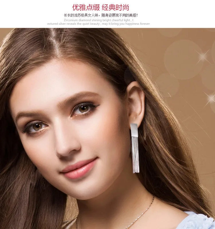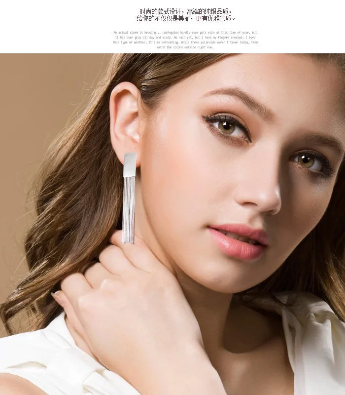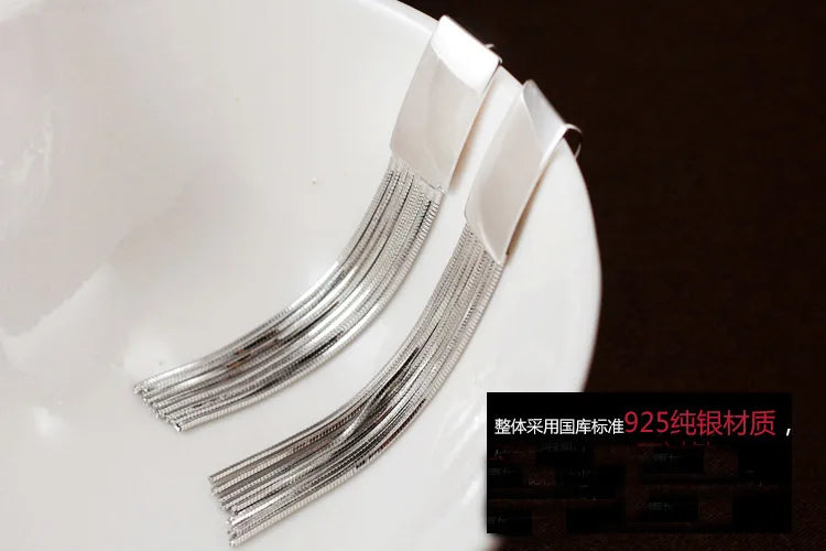 925 Silver Long Earrings Lovely Christmas Gift Women Jewelry
