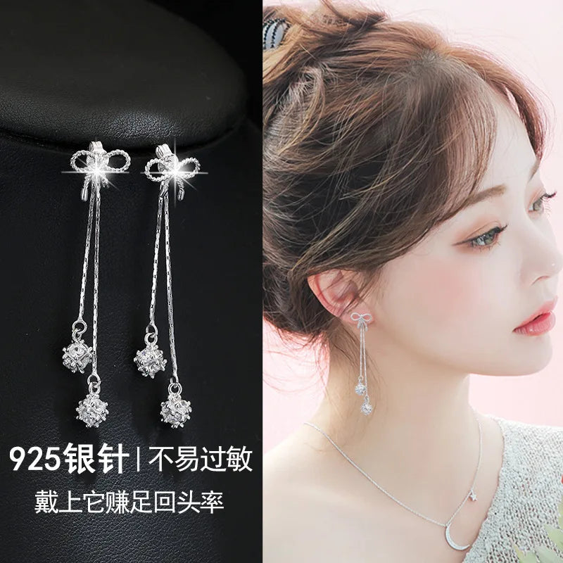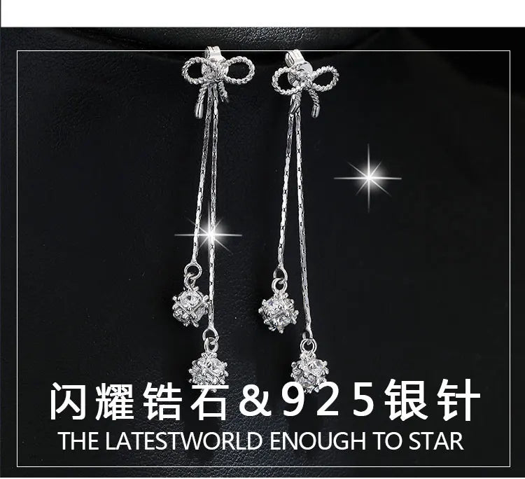 925 Silver Long Earrings Women Christmas Gift Jewelry Pendientes Plata 925