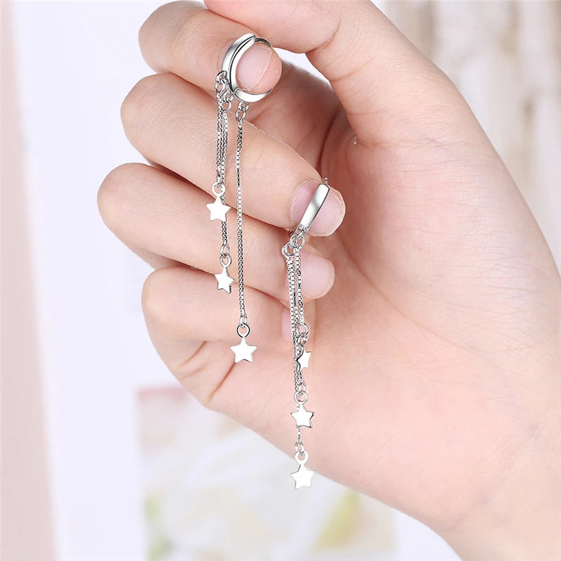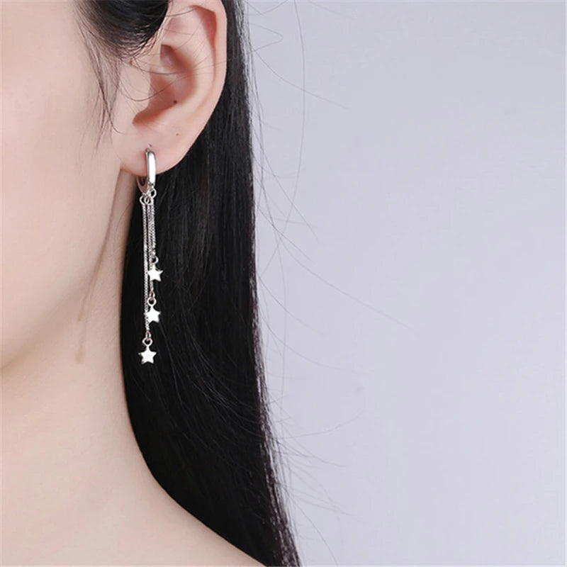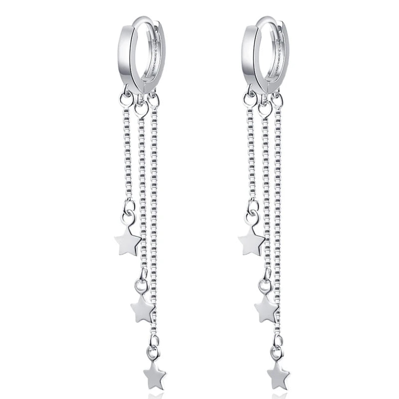 Add a touch of elegance to your look with these stunning 925 sterling silver long tassel star earrings. Perfect for parties, weddings, or as a special gift for a loved one.